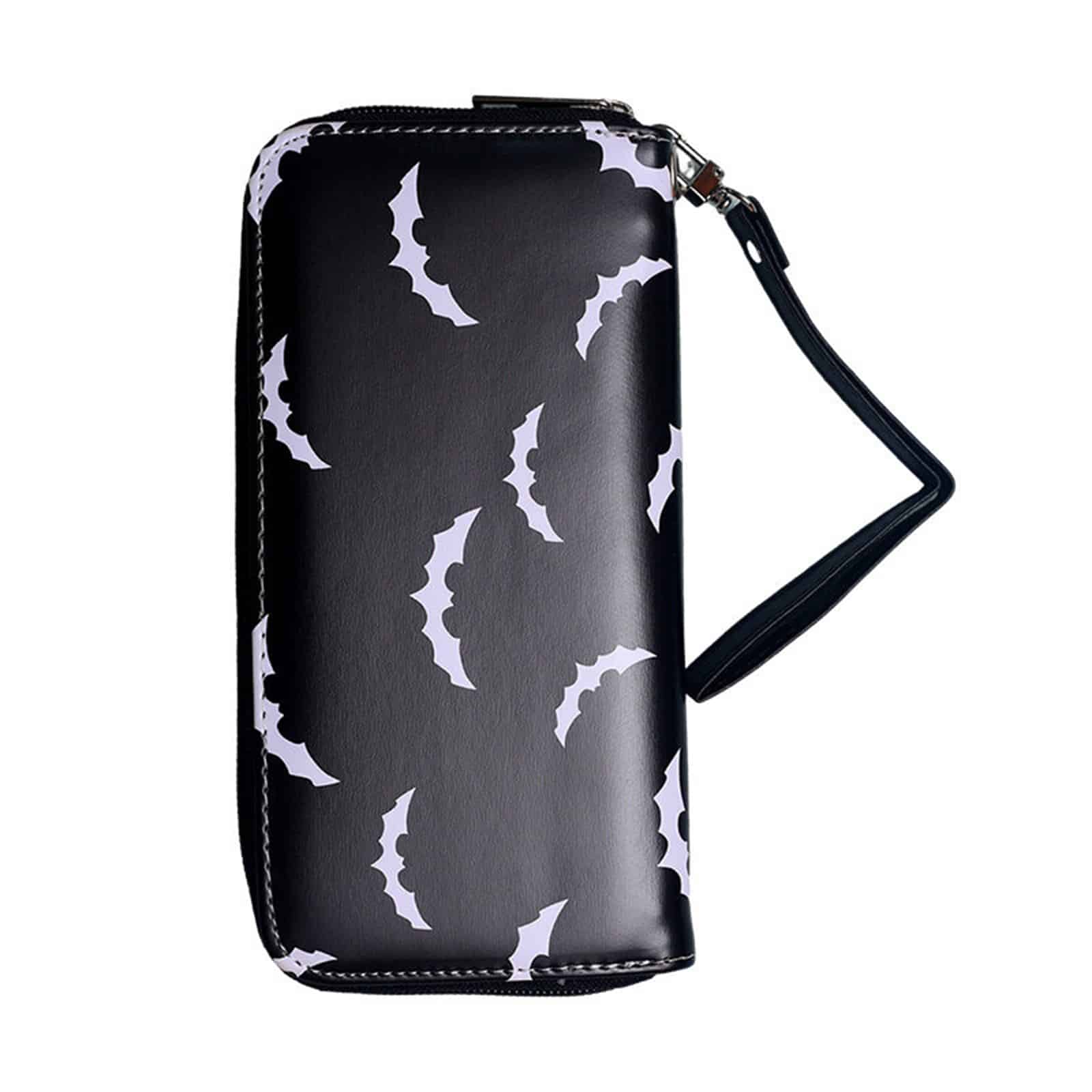Dunkel, schlicht und perfekt für jeden Gothic-Look – die Night Bats Zip Wallet kombiniert praktischen Stauraum mit einem stilvollen Fledermaus-Allover-Design. Ideal für Alltag, Festival oder Nightlife.