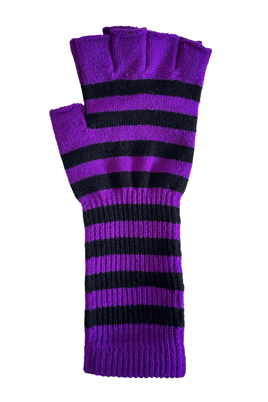 Klassisch, rebellisch und perfekt für alternative Looks – die Midnight Stripes Handschuhe setzen mit ihrem kontrastreichen Streifenmuster ein starkes Statement. Die offenen Fingerspitzen sorgen für Bewegungsfreiheit und machen sie ideal für Alltag, Festivals oder edgy Layering-Styles.