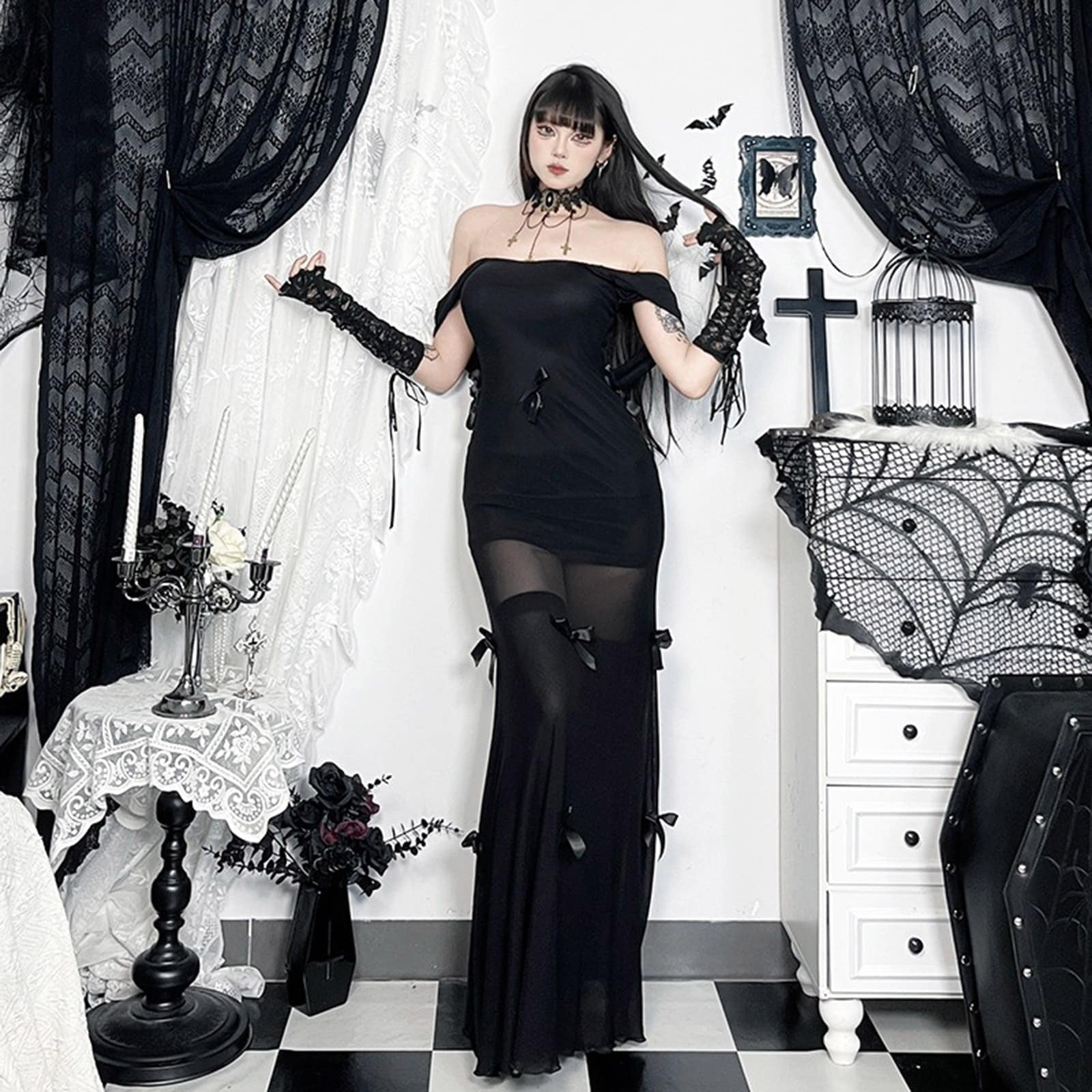 Bodenlanges Gothic-Kleid das sich schnell zu einem Minikleid umfunktionieren lässt. Du entscheidest wonach Dir ist und trägst es lang oder kurz.