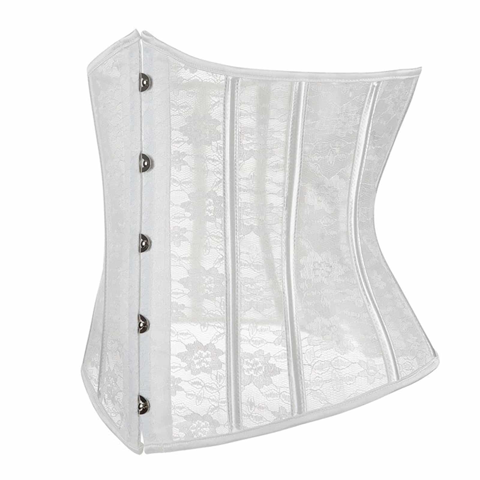 Romantisches Taillenkorsett mit zarter Spitzenoptik und eleganter Sanduhrform. Die Front wird klassisch über einen stabilen Metall-Busk geschlossen, während die rückseitige Schnürung eine präzise Anpassung der Silhouette ermöglicht. Leicht schimmernde Details und die filigrane Spitze verleihen dem Korsett eine edle, feenhaft anmutende Ausstrahlung – perfekt für Gothic-Elegance, Bridal-Styles oder besondere Anlässe.