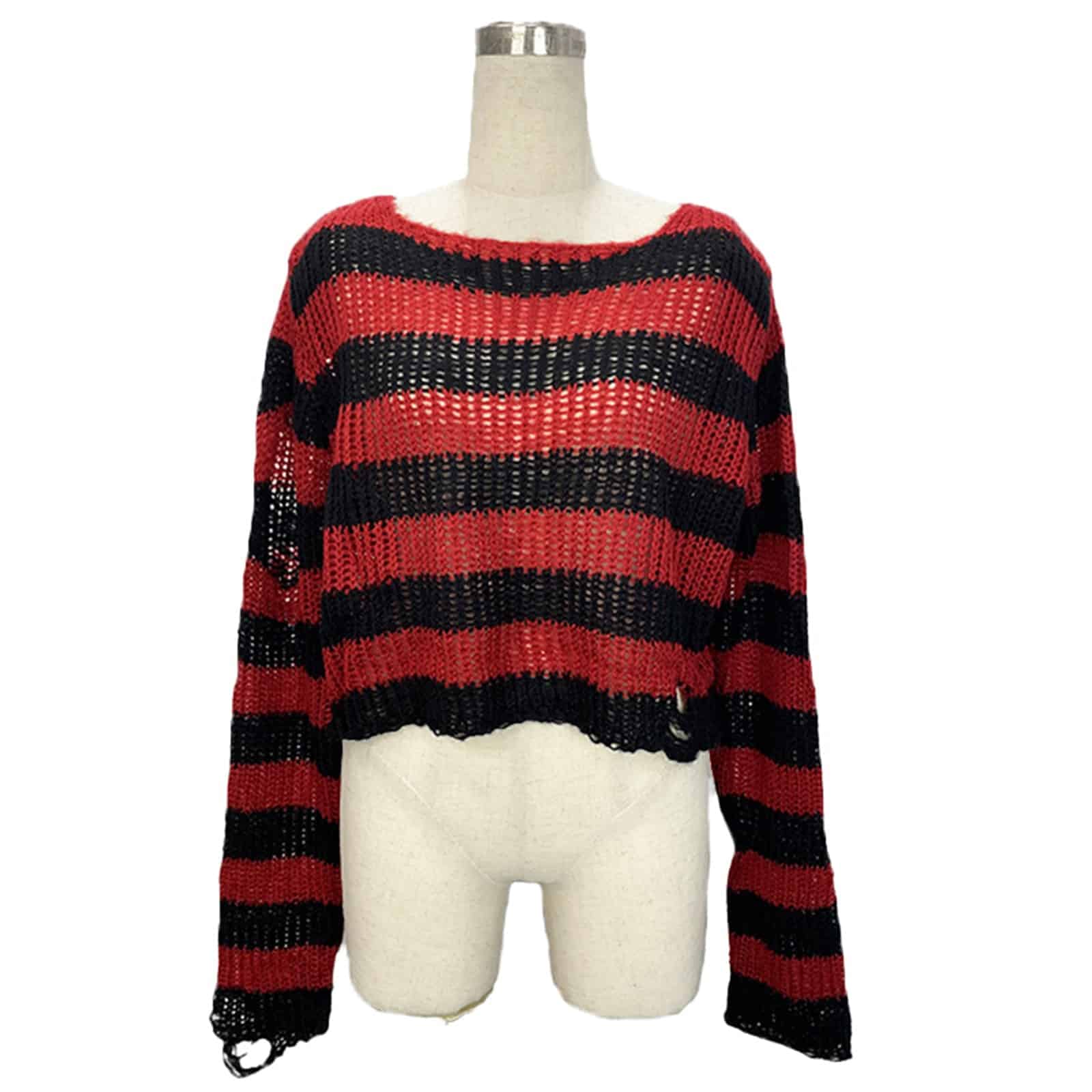 Locker gestrickter Cropped-Pullover im lässigen Distressed-Look mit weiten Ärmeln und bewusst unregelmäßig gearbeiteten Details am Saum und an den Bündchen. Das grobmaschige Design sorgt für einen luftigen, edgy Style, während die Einheitsgröße eine bequeme Passform von S bis XL ermöglicht – perfekt für alternative, casual oder layered Outfits.