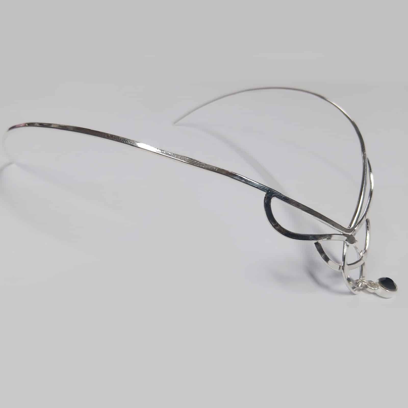 Filigrane Linien verweben sich zu einer anmutigen Form, die an silberne Fäden des Mondlichts erinnert. Das Diadem wirkt wie ein kunstvoll gesponnenes Netz aus Eleganz und Geheimnis – geschaffen für nächtliche Zeremonien, elfische Königinnen und alle, die zwischen Traum und Dunkelheit wandeln. Ein Schmuckstück, das Leichtigkeit und Stärke zugleich verkörpert.