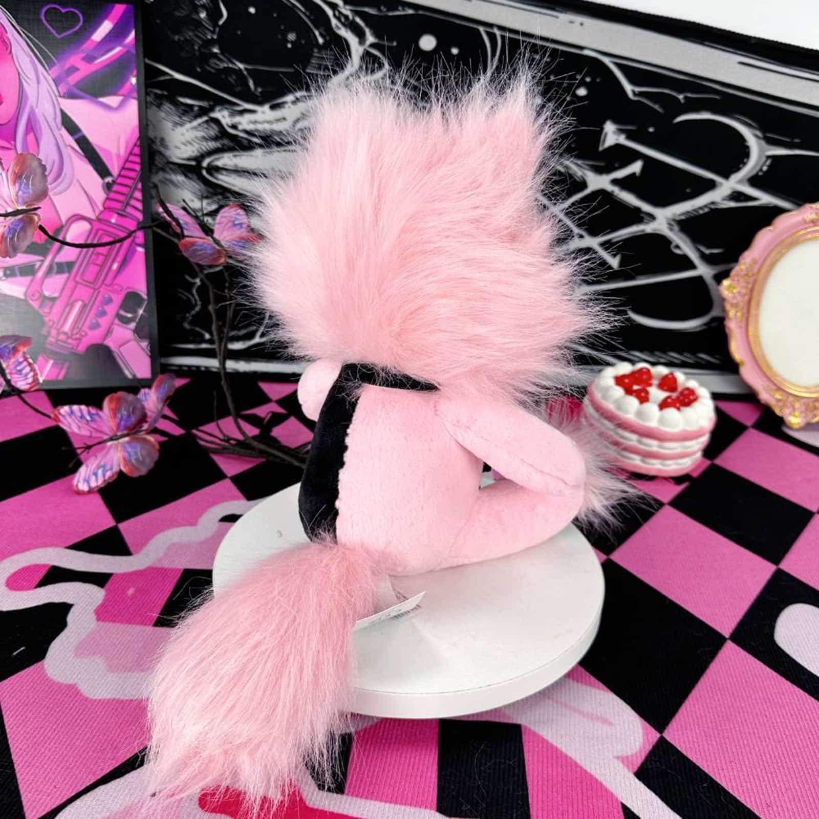 Dieses außergewöhnliche Plüschtier in Form eines pinkfarbenen Waschbären vereint süßen Charme mit einem Hauch von Emo-Style. Der lange, flauschige Pelz auf Kopf und Gesicht sorgt für ein verspieltes Volumen, während die schwarzen Ohren und Pfoten einen starken Kontrast setzen. Die großen Augen mit ihrer „Masken“-Optik verleihen dem Waschbären einen besonders niedlichen Ausdruck, der durch die schwarze Samtschleife am Hals noch eleganter wirkt. Ein perfektes Stück für Anime- und Plüschliebhaber, das sowohl zum Kuscheln als auch als dekoratives Highlight begeistert.