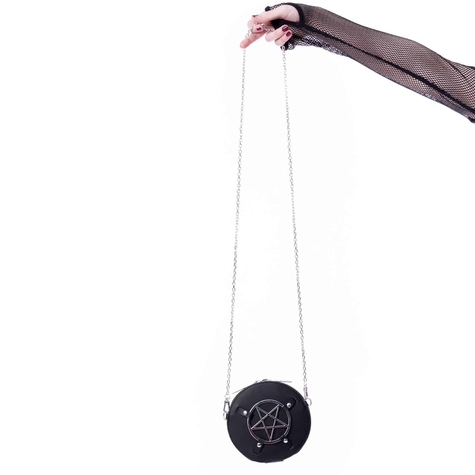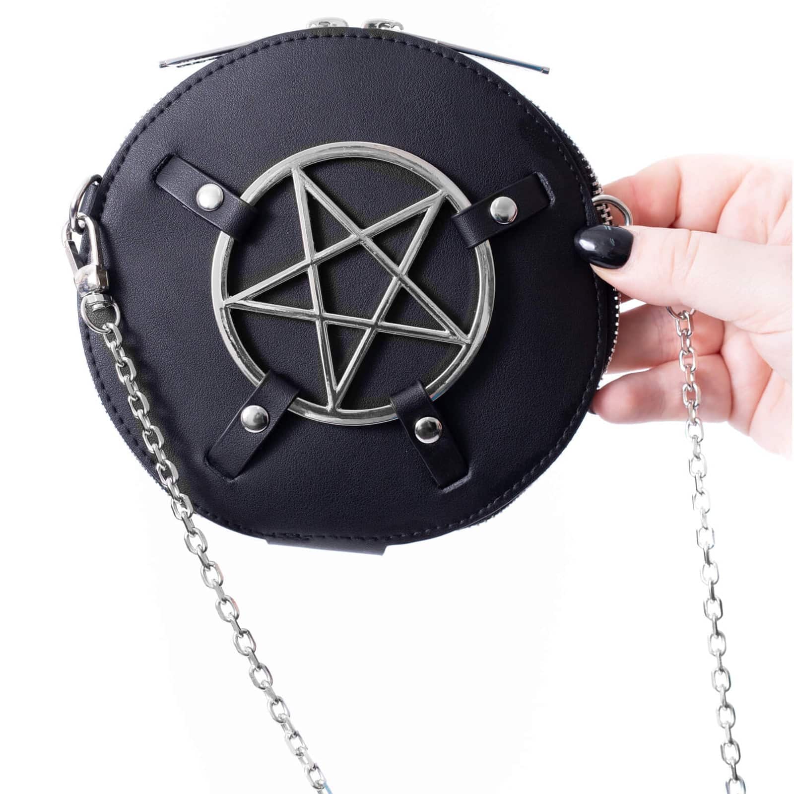 Kompakt, mystisch und mit dunkler Symbolkraft: Die Hexlock Haven Geldbörse von Poizen Industries setzt auf klare Linien und ein starkes okkultes Design. Das zentrale Pentagramm-Element auf der Vorderseite verleiht der runden Form eine markante, geheimnisvolle Ausstrahlung und macht dieses Accessoire zu einem echten Blickfang für Deinen Alternative Look.