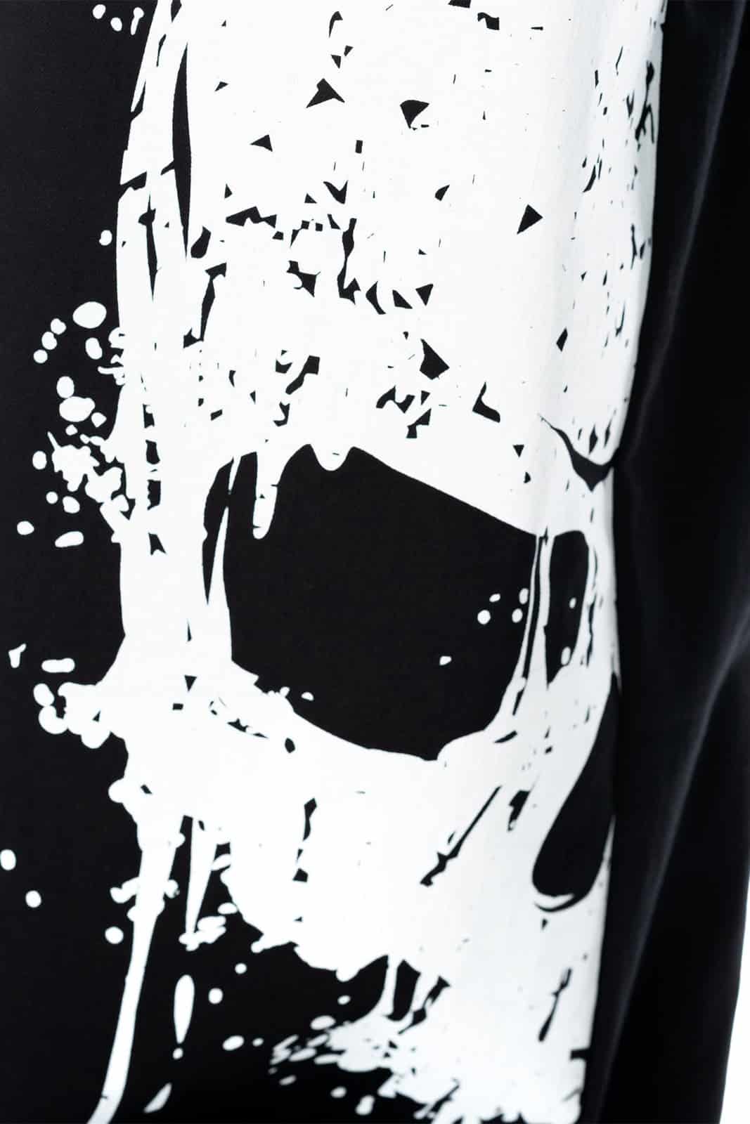 Auffälliger Skull-Print in kontrastierendem Weiß auf der Vorderseite