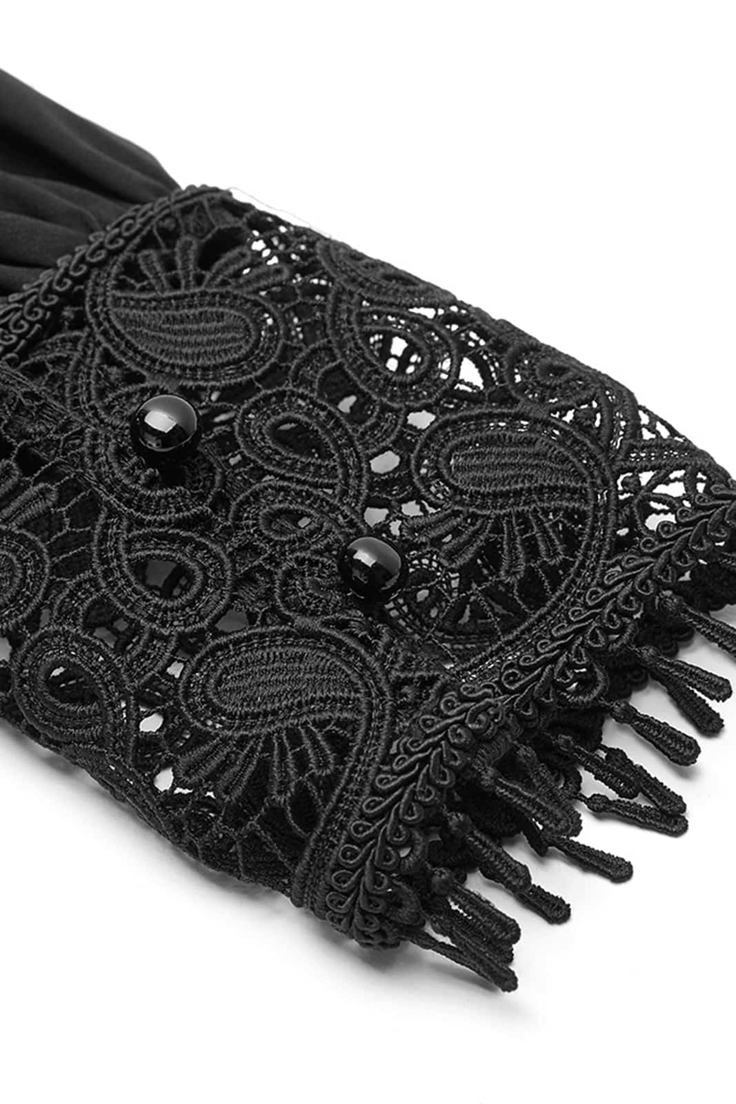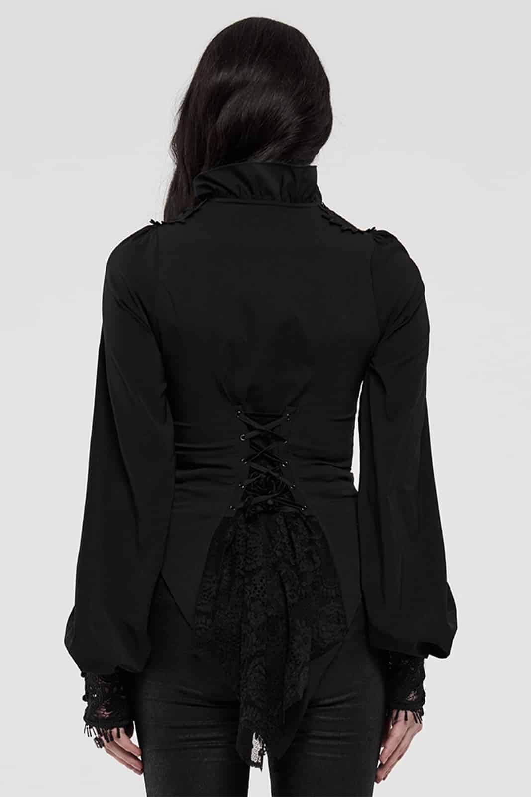 Eleganz trifft dunkle Romantik: Die Sansa Bluse von Punk Rave vereint klassischen Gothic Stil mit femininer Silhouette und aufwendigen Details. Der taillierte Schnitt mit Prinzessnähten formt eine schöne Linie, während die voluminösen Ärmel und feinen Spitzenabschlüsse dem Look eine edle, dramatische Note verleihen.