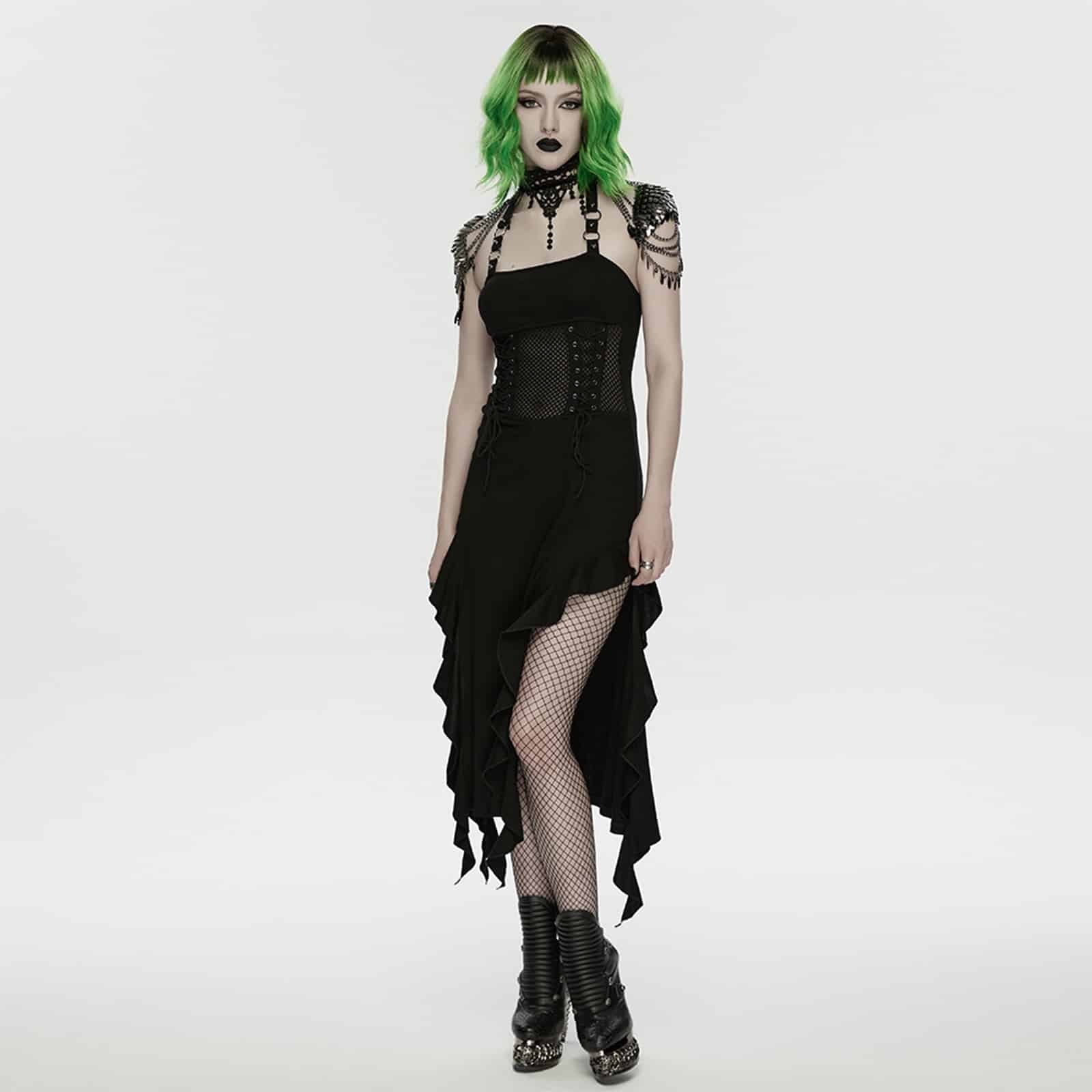 Dunkle Eleganz trifft auf kriegerische Ästhetik: Der „Gothic Maiden“ Schulter-Choker vereint filigrane Spitze mit markanten, schuppenartigen Metall-Elementen zu einem außergewöhnlichen Statement-Piece. Die kunstvoll gearbeitete Spitzenbasis legt sich eng um den Hals und geht fließend in die rüstungsinspirierten Schulterpartien über, die mit beweglichen Ketten und Anhängern veredelt sind. So entsteht ein faszinierender Mix aus romantischer Gothic-Ästhetik und düsterem Fantasy-Armor-Look.