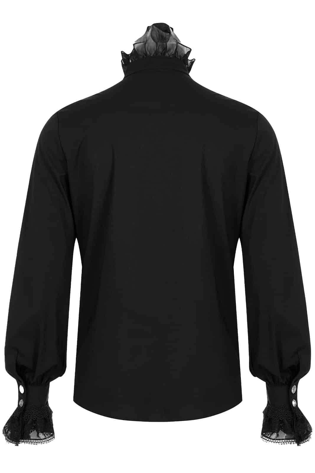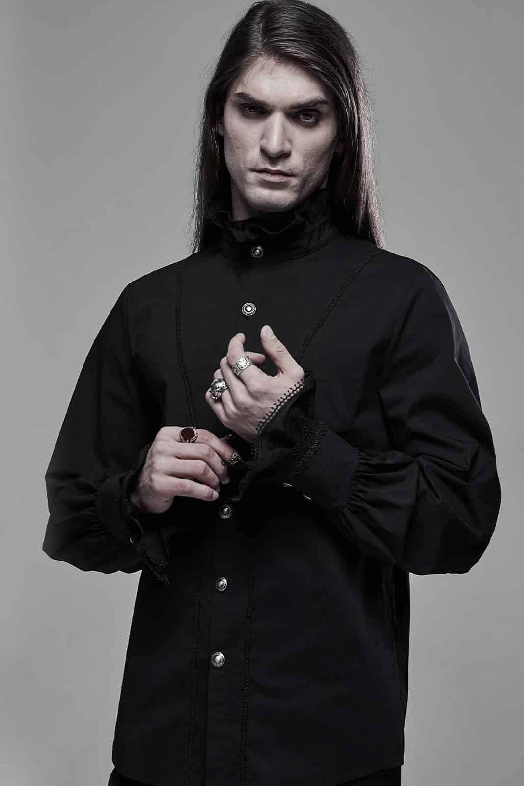 Langarmhemd im klassischen Schnitt aus feinem Baumwollmischgewebe mit gerafften Ärmelbündchen. Bestückt mit metall-silbernen geprägten Knöpfen und hohem Kragen. Verziert mit einer dezenten Stickpaspelierung auf der Vorderseite.