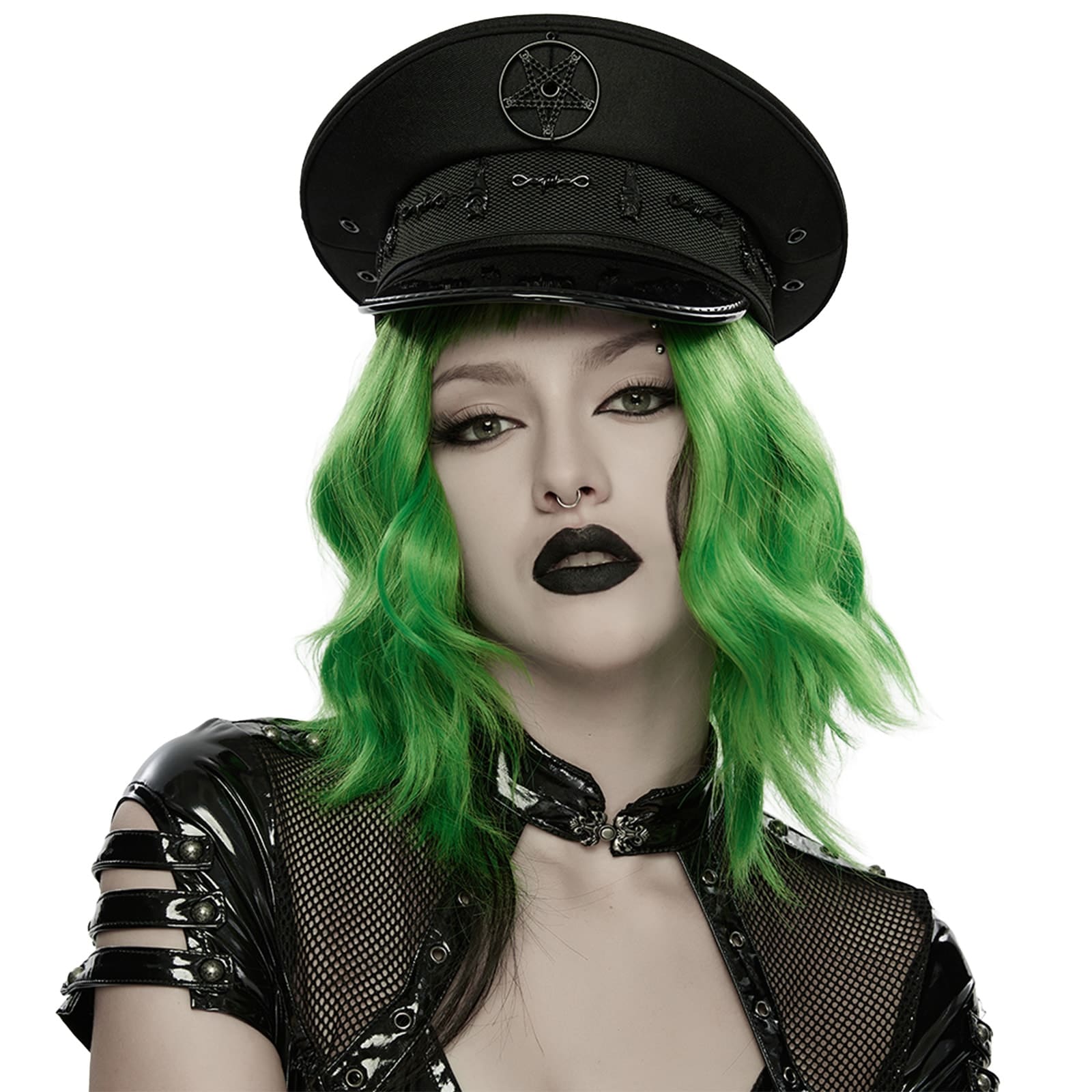 Streng, düster und mit klarer Dominanz – der „Dark Dominion Officer Hat“ vereint Military Gothic mit markanten Symbolen und harter Attitude. Ein Statement-Piece, das jedem Outfit sofort eine autoritäre, rebellische Note verleiht.