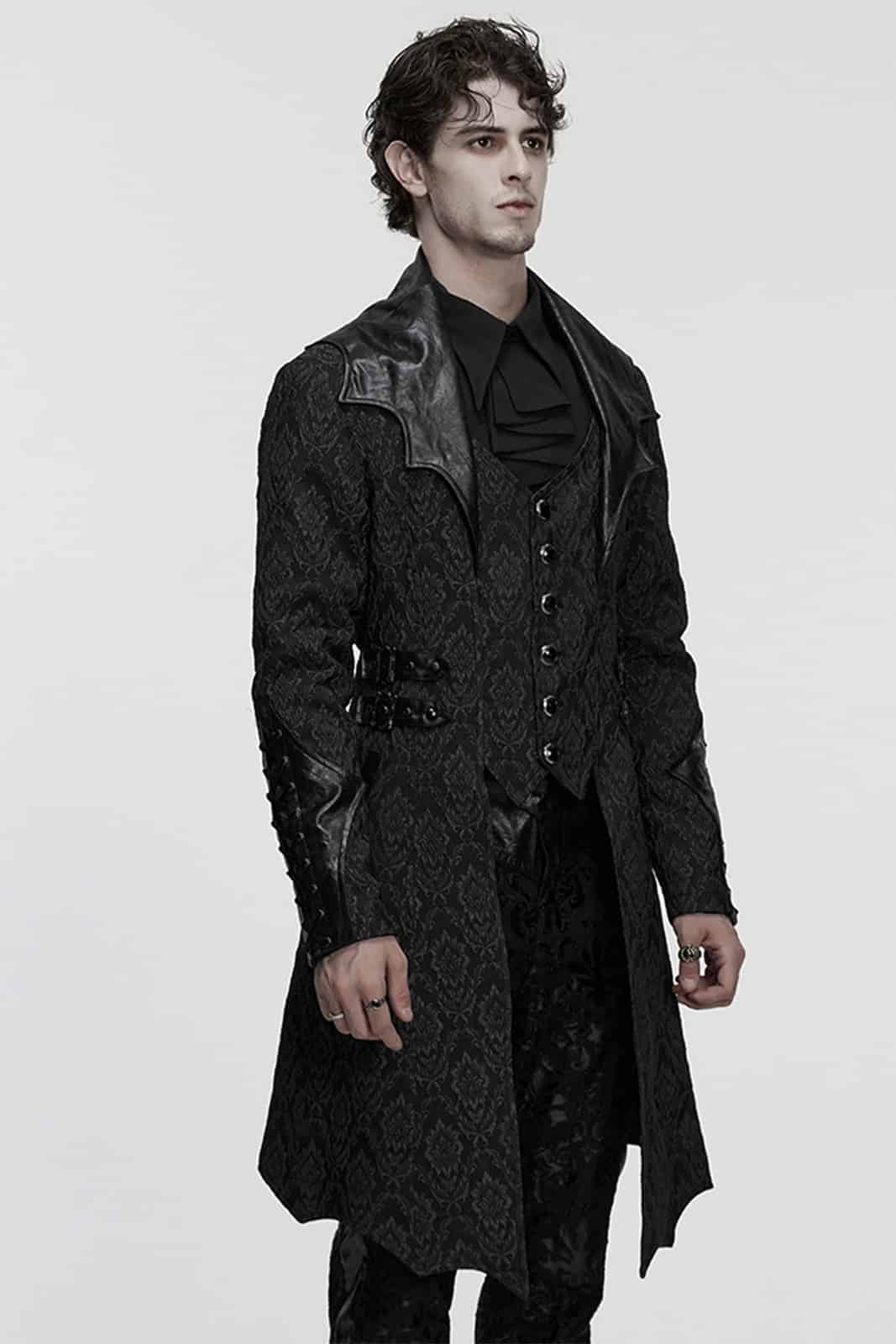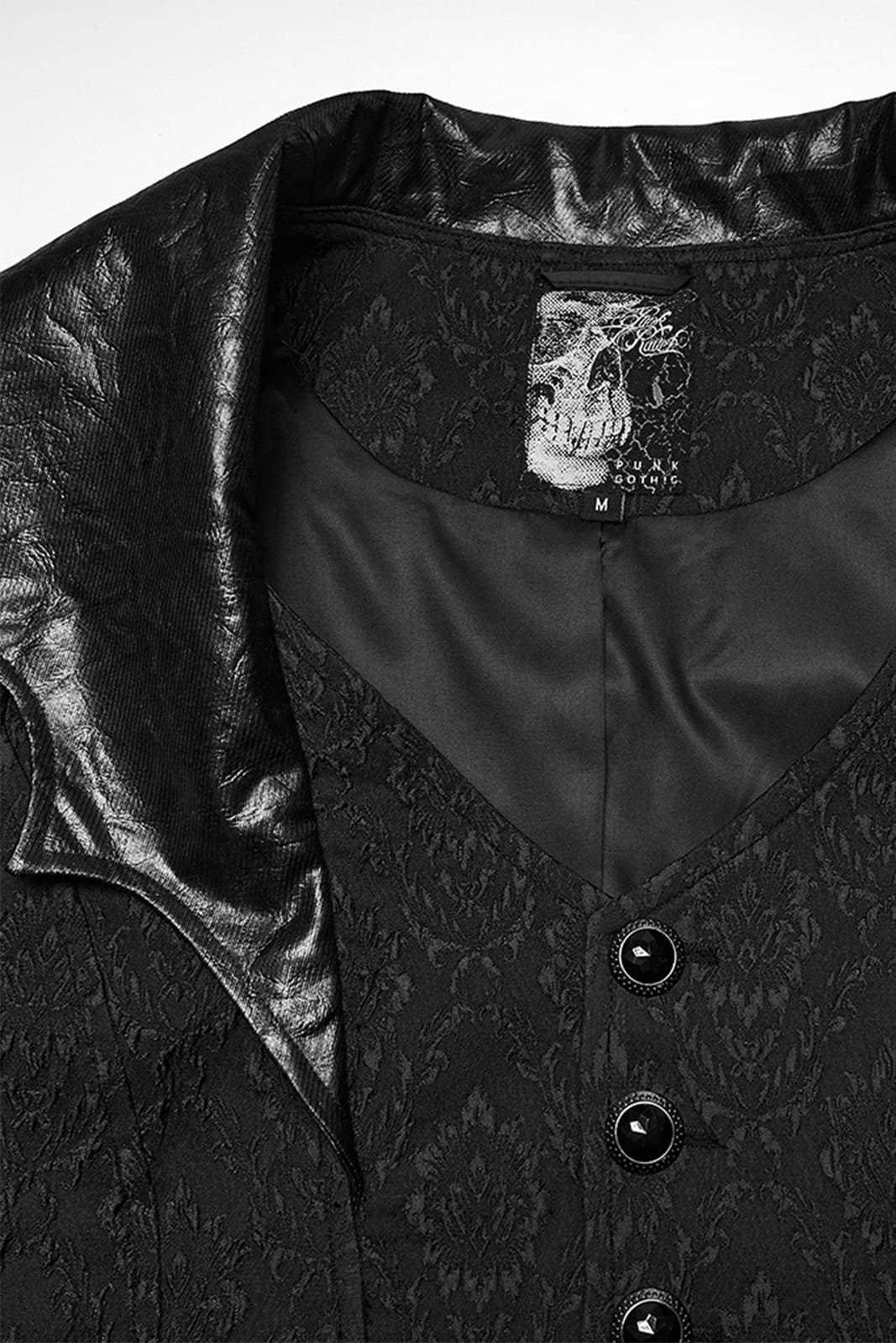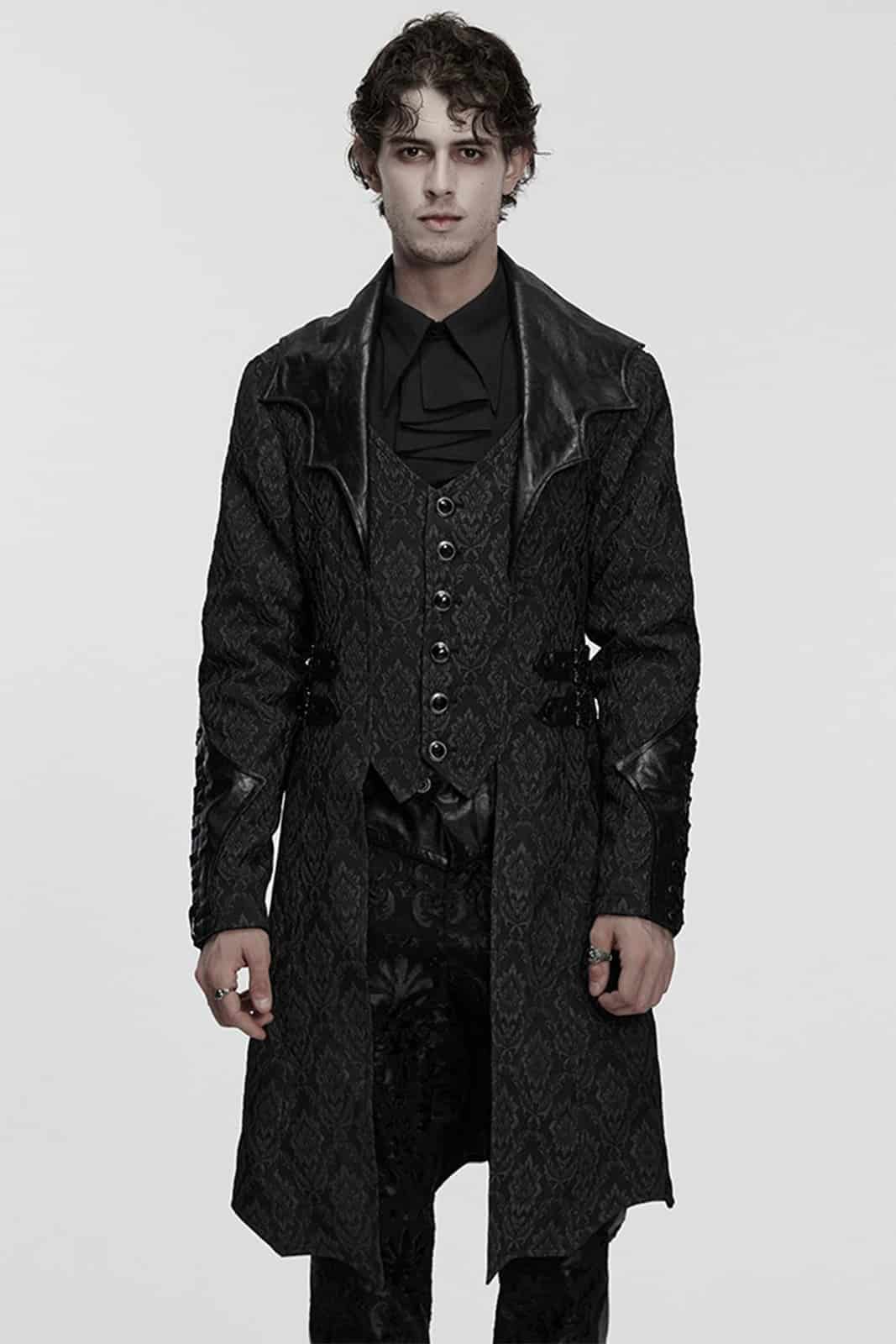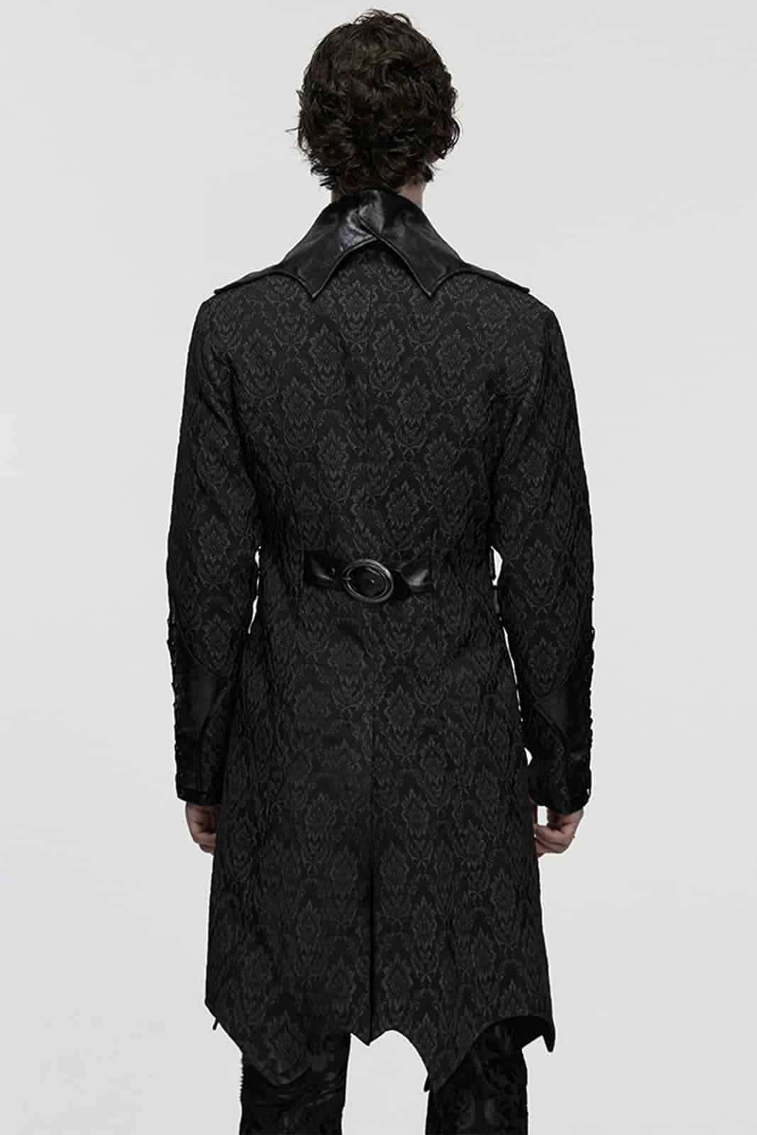 Erhaben, düster und von aristokratischer Strenge durchzogen – die Imperium Nocturne Black Jacket wirkt wie das Gewand eines nächtlichen Herrschers. Das opulente Brokatmuster verleiht dem Mantel eine tiefgründige Struktur, während lederartige Akzente und markante Linienführung für eine moderne, kraftvolle Präsenz sorgen. Zwischen viktorianischer Noblesse und dunkler Avantgarde entsteht ein Look, der Autorität ausstrahlt, ohne ein Wort zu verlieren.