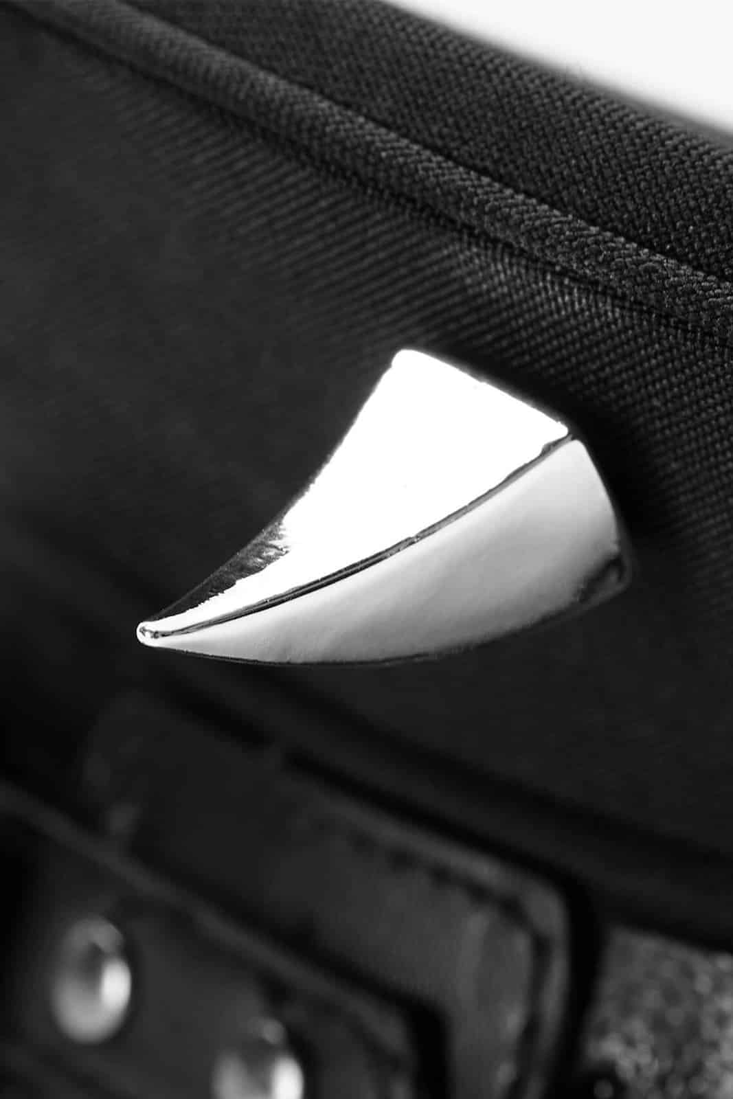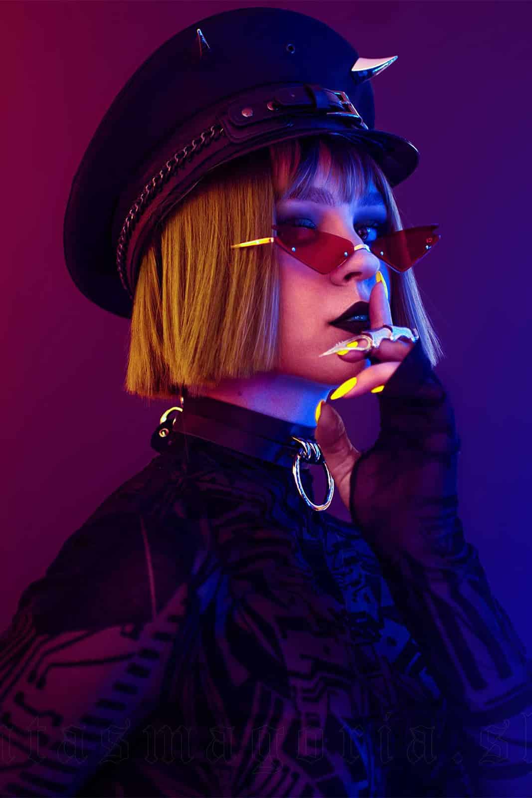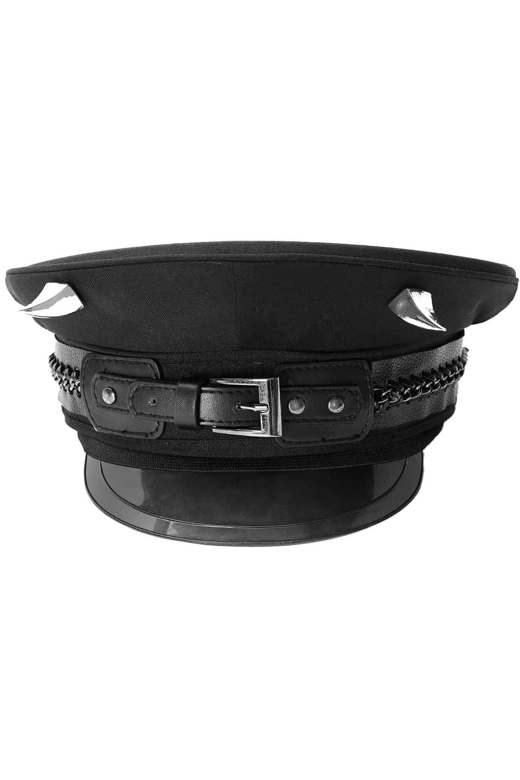 Schildmütze im Militärstil mit Kunstlederband und auffälliger Kette. An der Front sind zwei kleiner Metallhörner angebracht. Perfekt um Dein Outfit zu pimpen.