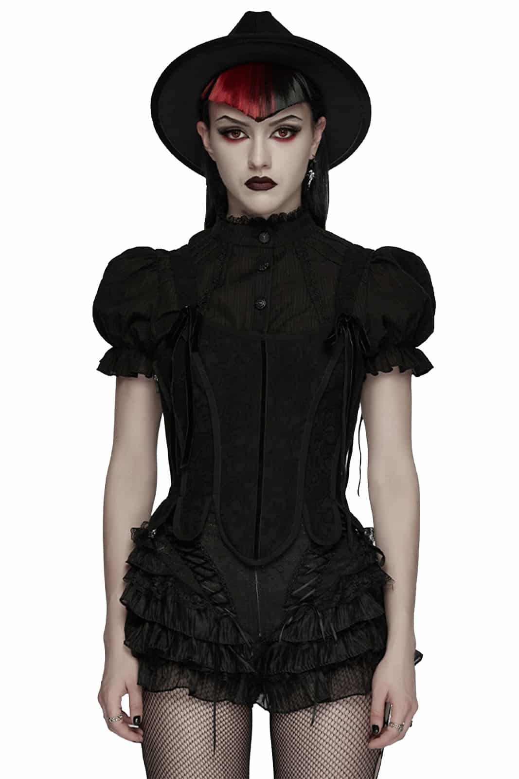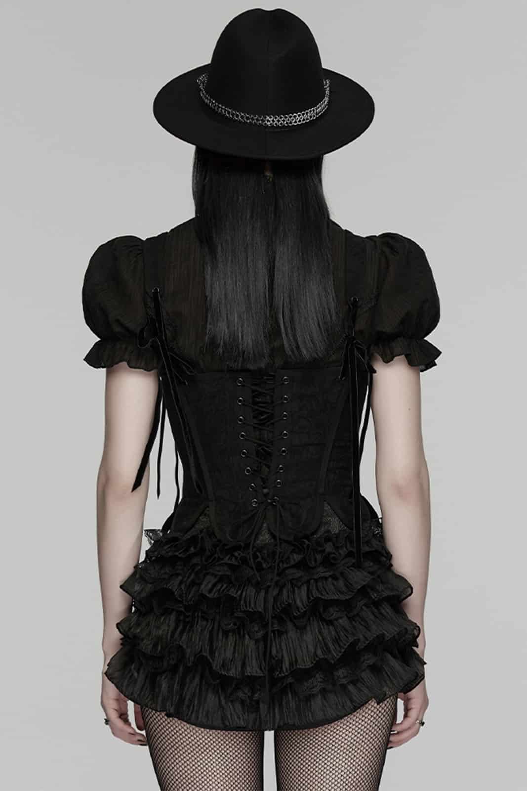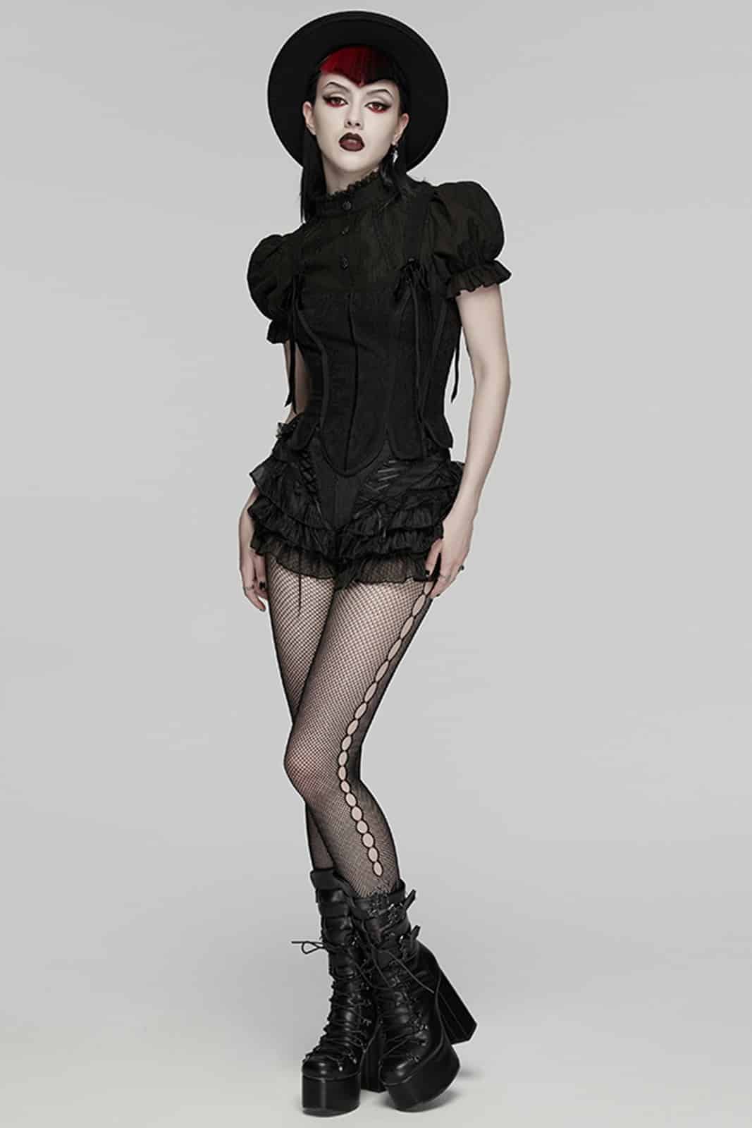 Verspielt, düster und voller romantischer Details – die „Faerie Doll Shorts“ bringen viktorianische Eleganz in deinen Gothic Look. Zarte Stoffe treffen auf strukturierte Elemente und schaffen ein außergewöhnliches Statement zwischen Dark Romance und Fantasy Aesthetic.