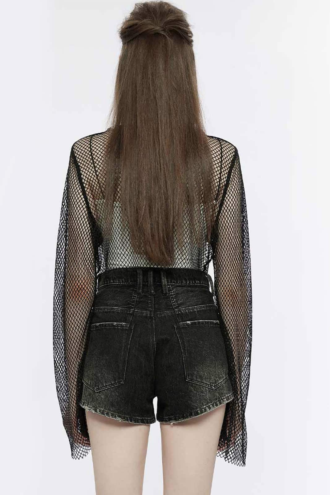Langärmeliges Netz-Top mit blickdichten Front-Panels. Kurz geschnitten im Crop-Stil mit einem Schnürdetail an der Front.