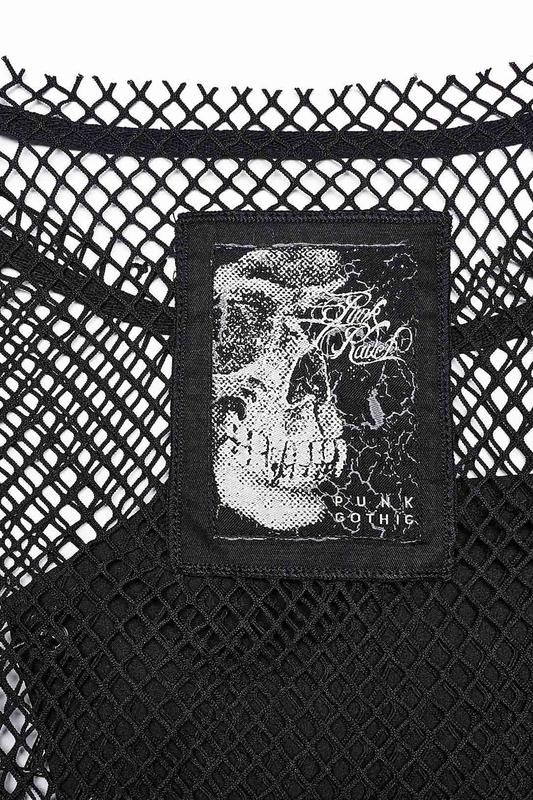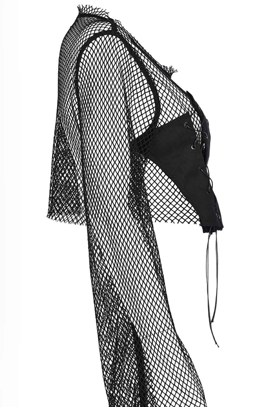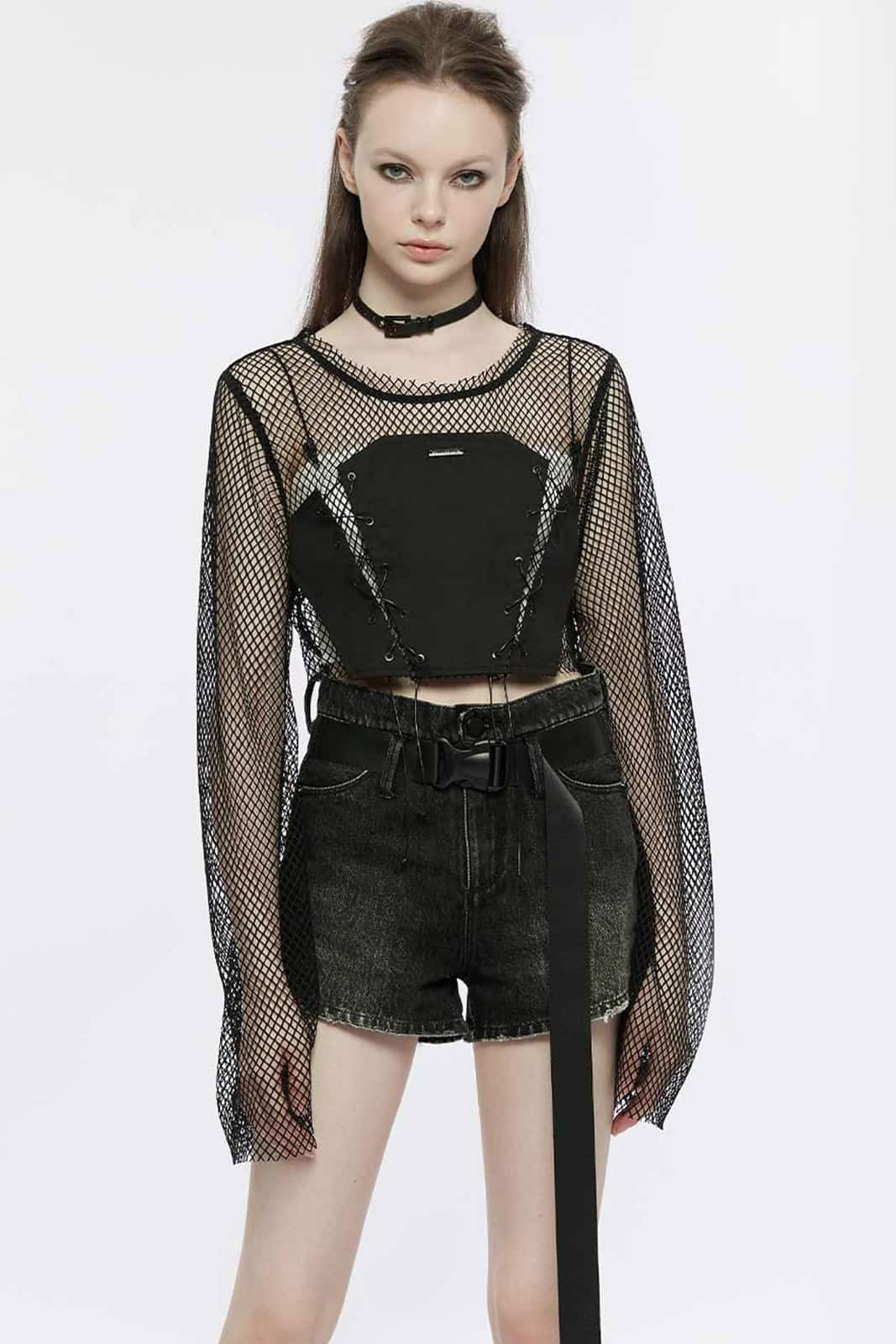 Long sleeve mesh top with opaque front panels. Cut short in a crop style with a lace-up detail at the front.