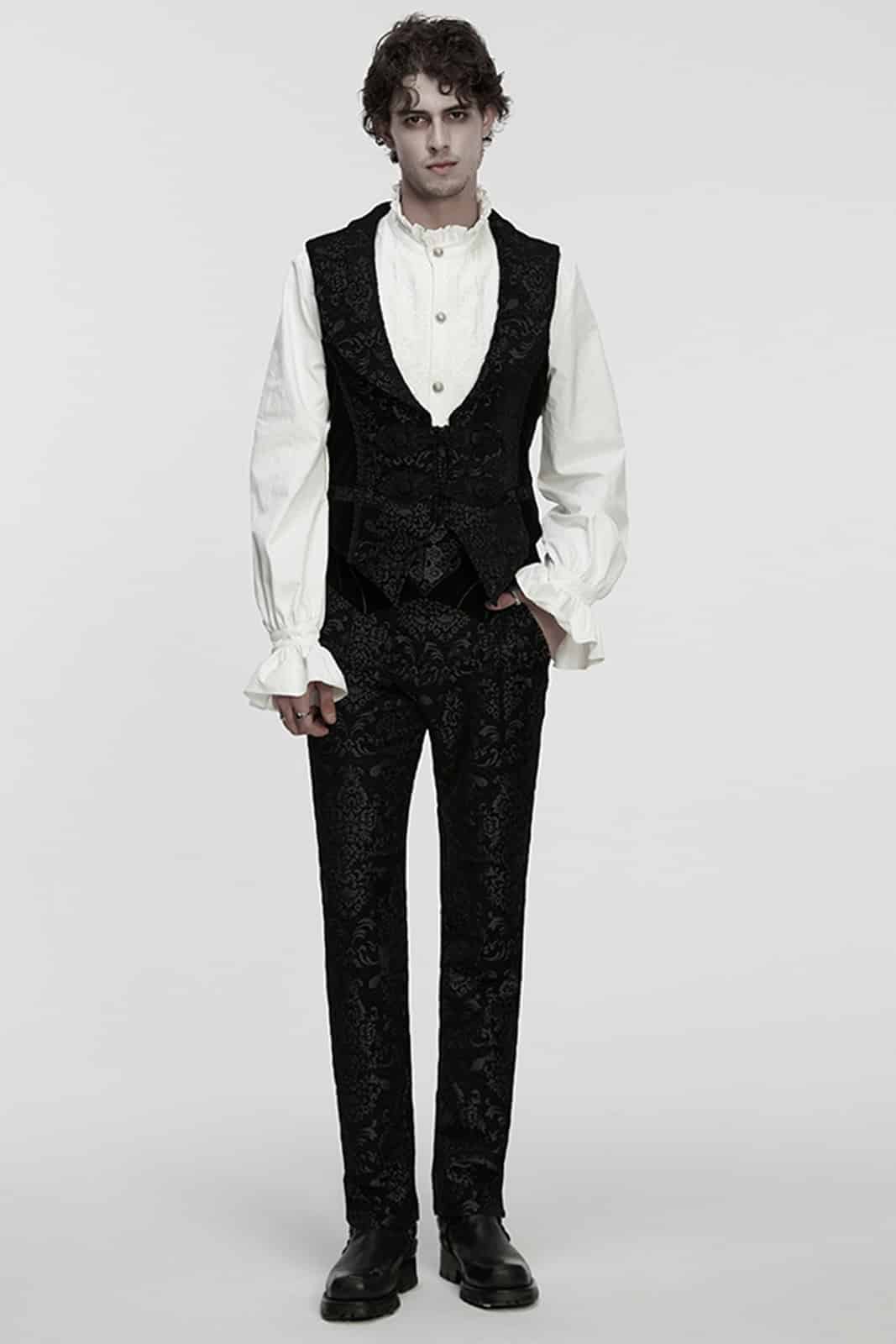 Dunkle Eleganz trifft auf aristokratische Raffinesse – diese Weste wirkt wie aus einer längst vergangenen Epoche und verleiht Deinem Look eine edle, dominante Ausstrahlung.