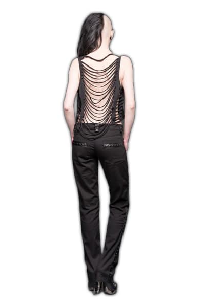 Gothic Damenhose mit seitlichen Kunstlederapplikationen in Nietenoptik.