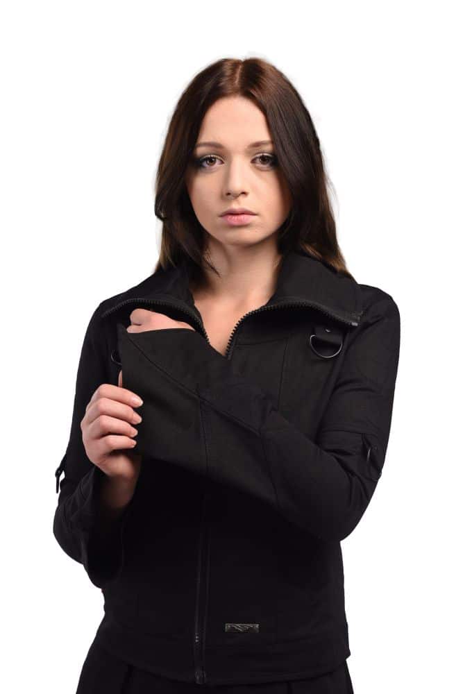 Leichte, ungefütterte Jacke aus Baumwolle, mit großem Kragen, ausgestellt geschnittenen Ärmeln und Ziernähten. Ausgestattet mit zwei Taschen, Frontreißverschluß und schwarzen D-Ringen.