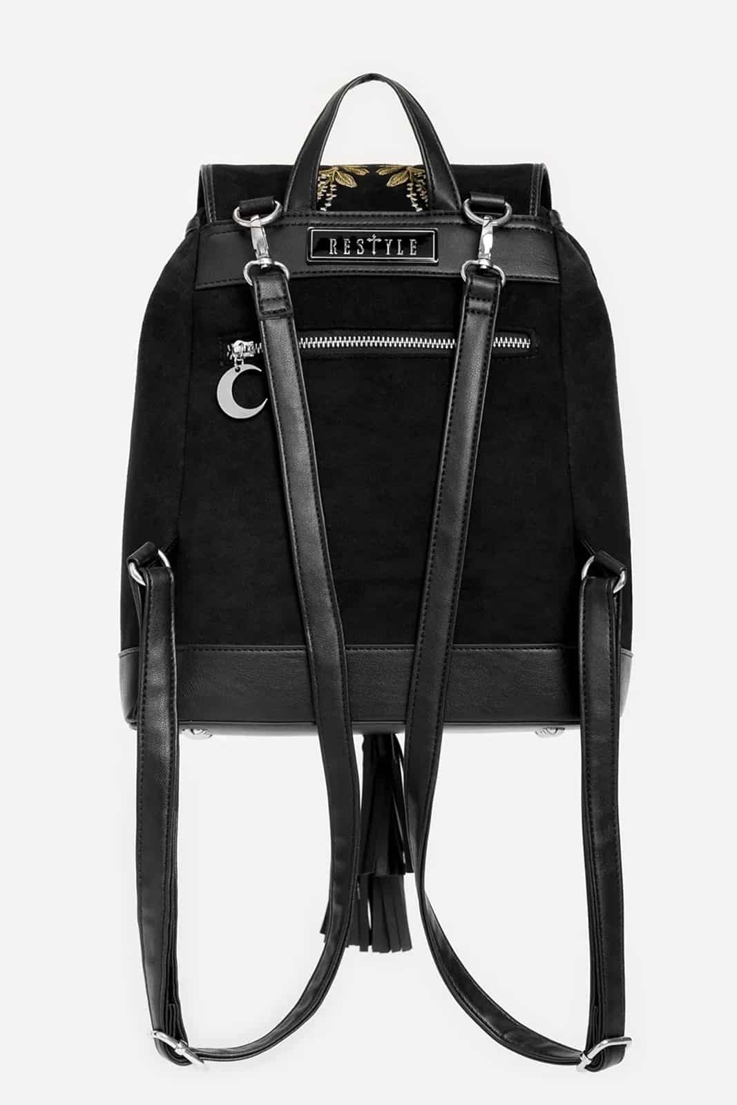 Mond-, Libellen- und Blumenstickerei am Taschenboden.