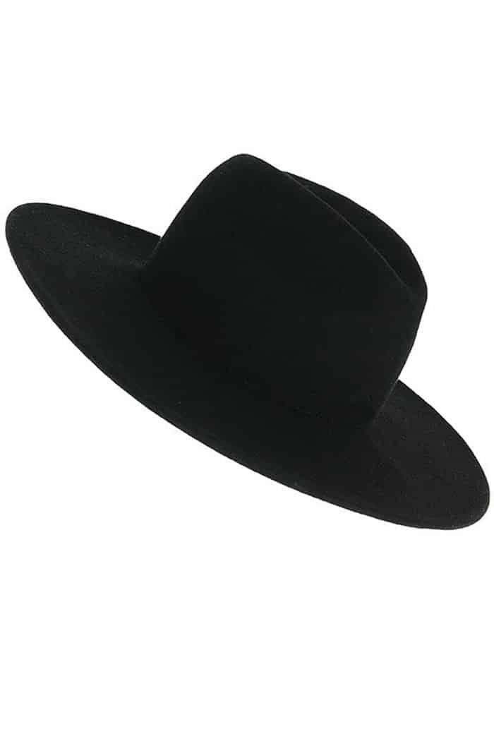 Gothic Hut aus Wollfilz mit 10 cm breiter Krempe, auf der Unterseite mit Kreuzen, Monden und astrologischen Symbolen bedruckt. Ohne Hutband.