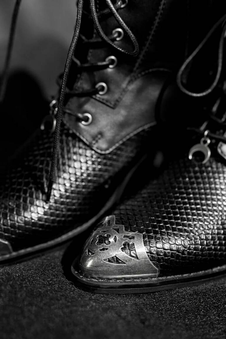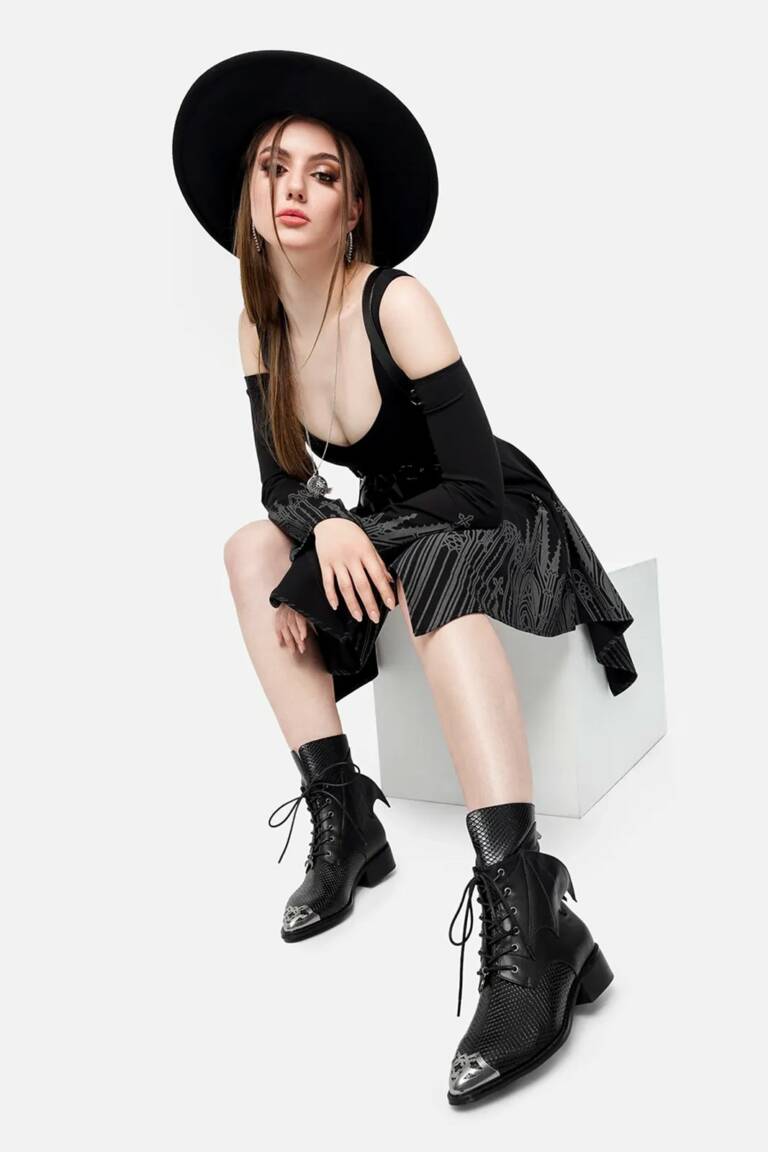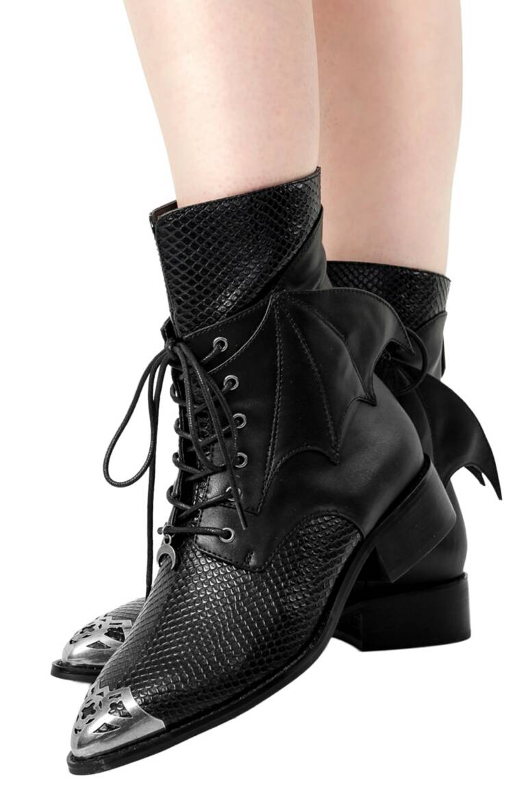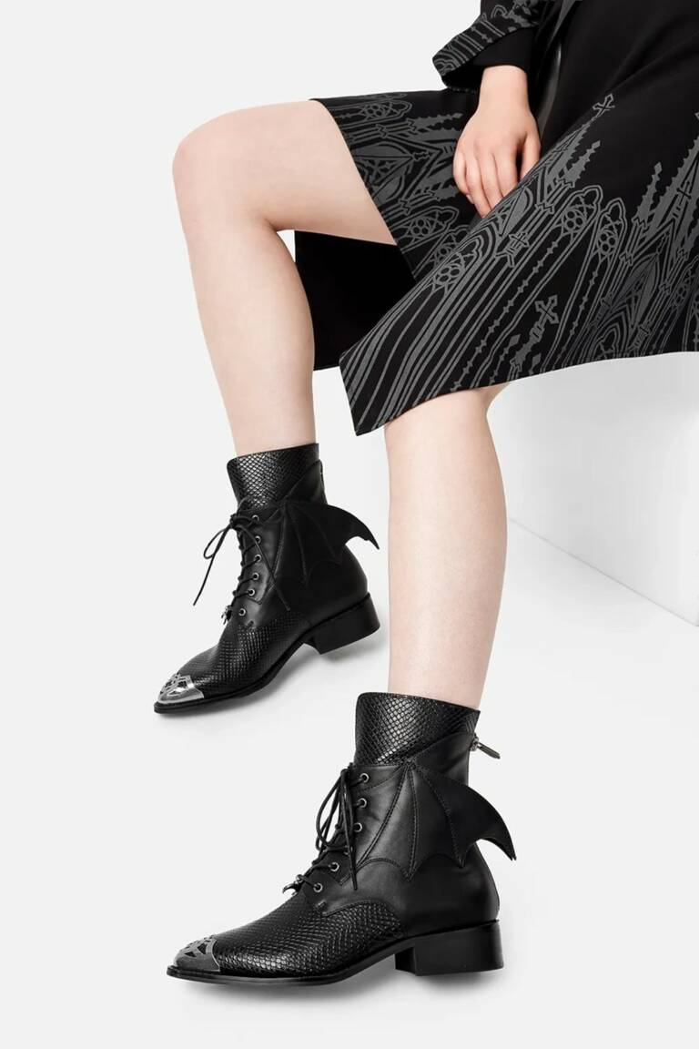 Diese Stiefeletten sind perfekt für alle, die ihren Gothic-Stil mit einem Hauch architektonischer Raffinesse unterstreichen möchten.