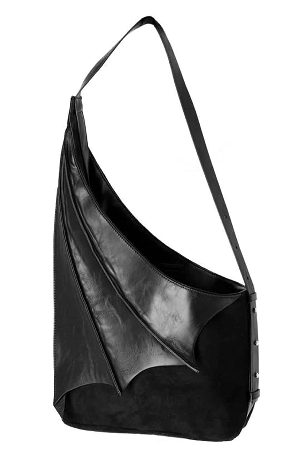Klassisch und doch extravagant. Der große 3D-Fledermausflügel verbindet sich mit der Armschlaufe und erzeugt eine einzigartige Form.Der Armgriff hat eine fünfstufige Einstellung. Damit wichtige Kleinigkeiten stets griffbereit sind und nicht in den Tiefen der Tasche verschwinden, ist diese Gothic-Damenhandtasche mit zwei Innentaschen im Hauptfach und einer kleinen Reißverschlußtasche auf der Rückseite ausgestattet.
