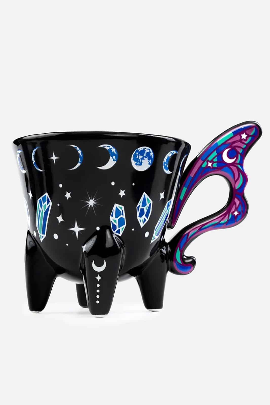 Der Henkel ist wie ein filigraner Feenflügel gestaltet und macht diese Tasse zu einem Must-have für alle Fairy-Liebhaber, die ein Stück Magie in ihren Alltag bringen möchten. Verziert mit Mondphasen, Sternen und Kristallmotiven verleiht das Fairygoth-Design jedem Raum einen mystischen Charme und ist ein einzigartiger Schatz für Sammler magischer Wohnaccessoires. Ideal für dein tägliches Ritual – vom Morgenkaffee bis zum Mitternachtstrunk