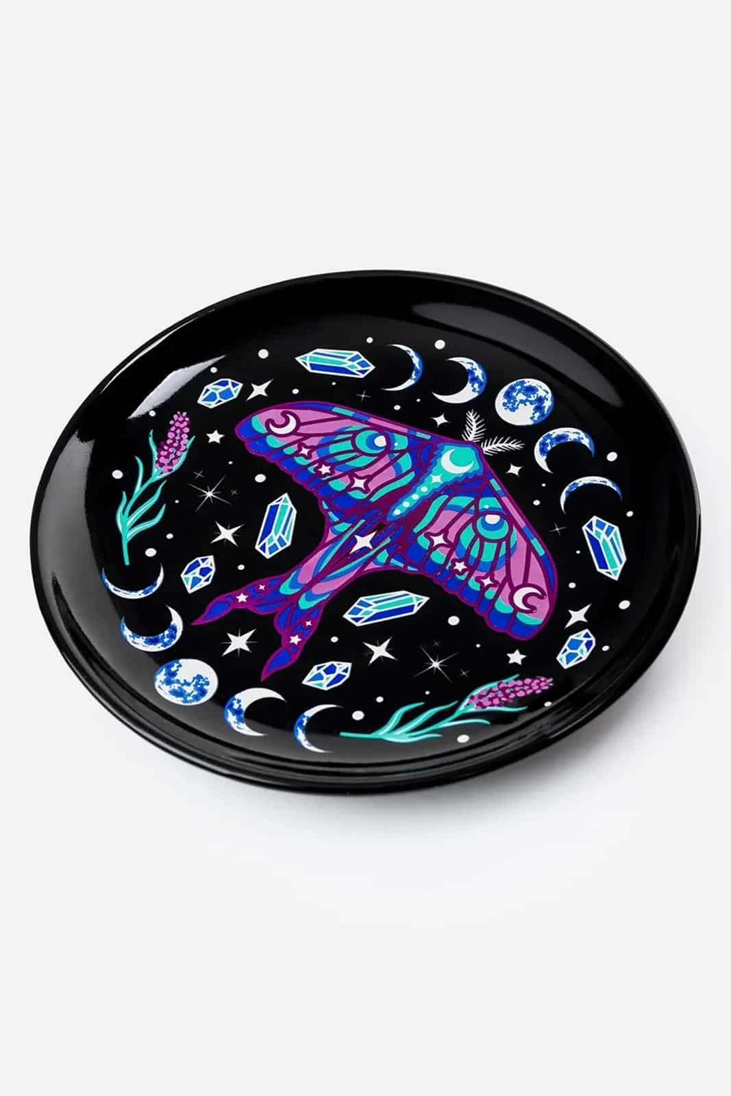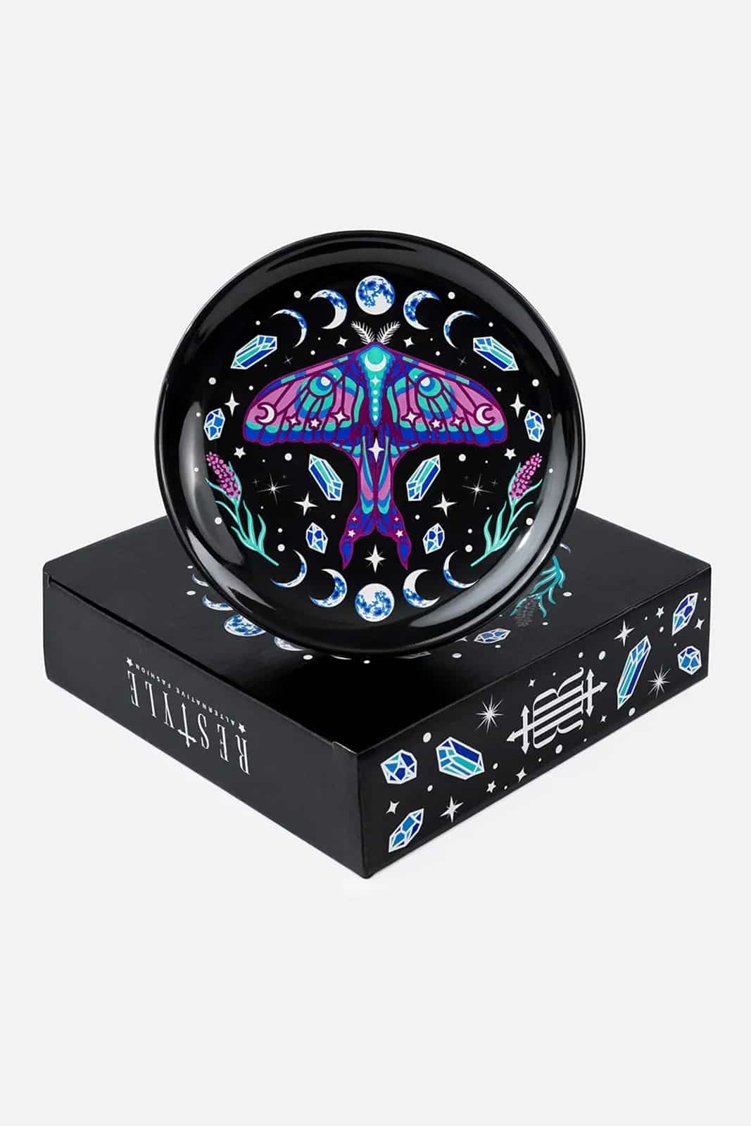 Dieses magische Stück Gothic-Homeware ist perfekt für deine Rituale am Tisch. Das Design zeigt eine farbenprächtige Luna-Motte, umgeben von Mondphasen, Kristallen, Pflanzen und Sternen – ein wahres Highlight für Altar oder Küche. Fairy-Liebhaber werden die verspielten Details lieben, die jedem Mahl eine Portion Magie verleihen. Auch Sammler magischer Wohnaccessoires finden hier ein echtes Schmuckstück.