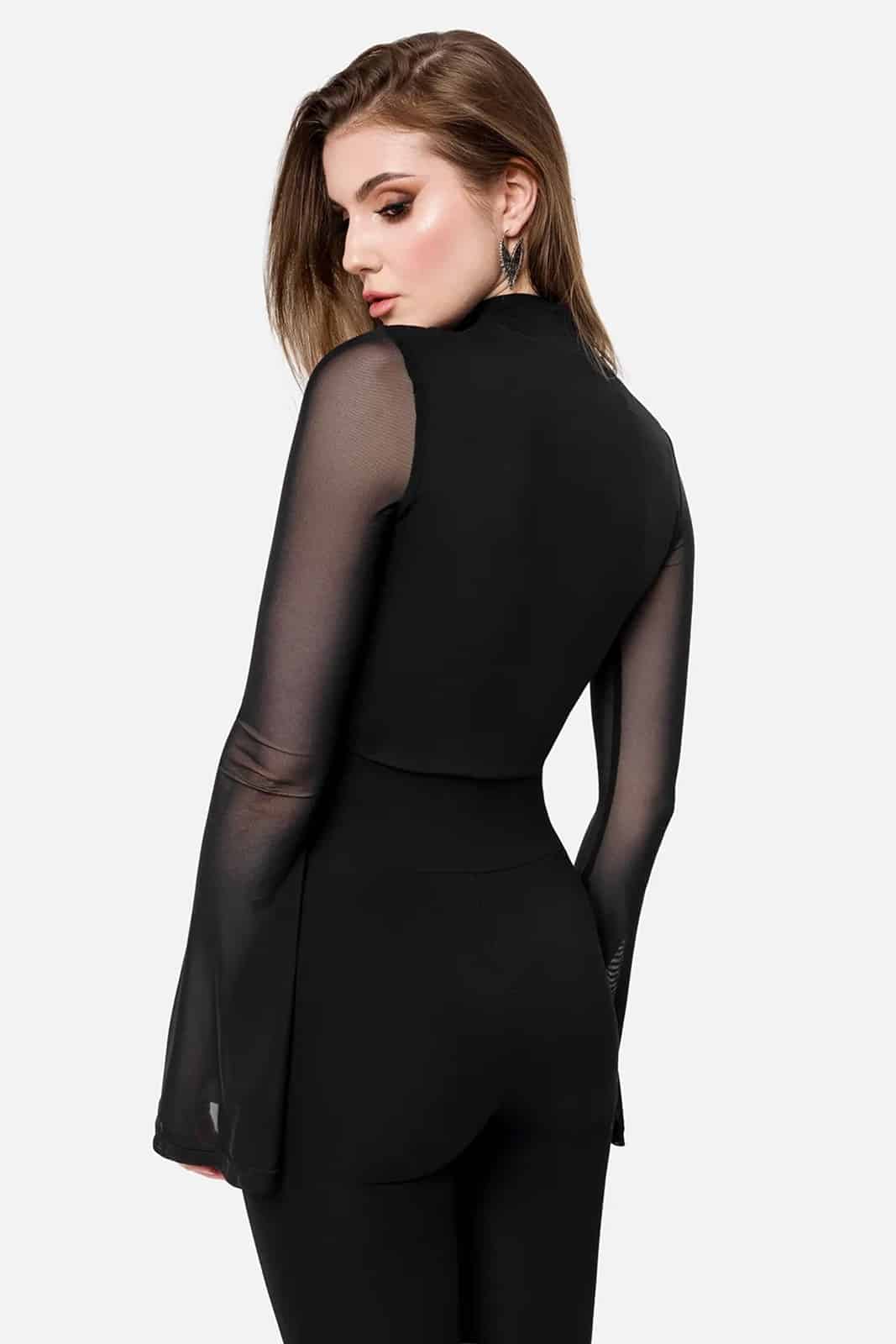 Transparente Mesh-Einsätze an Schultern und Ausschnitt