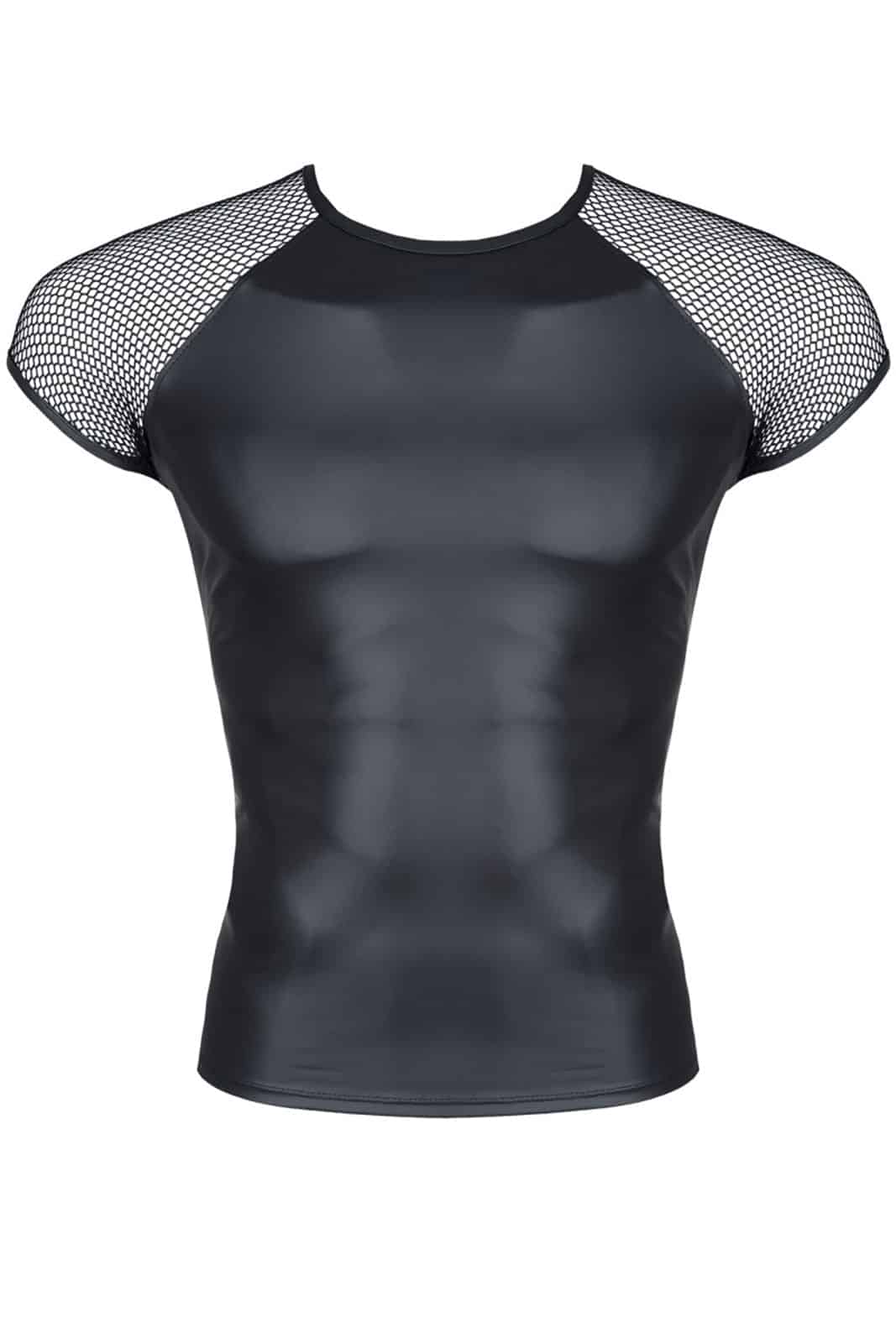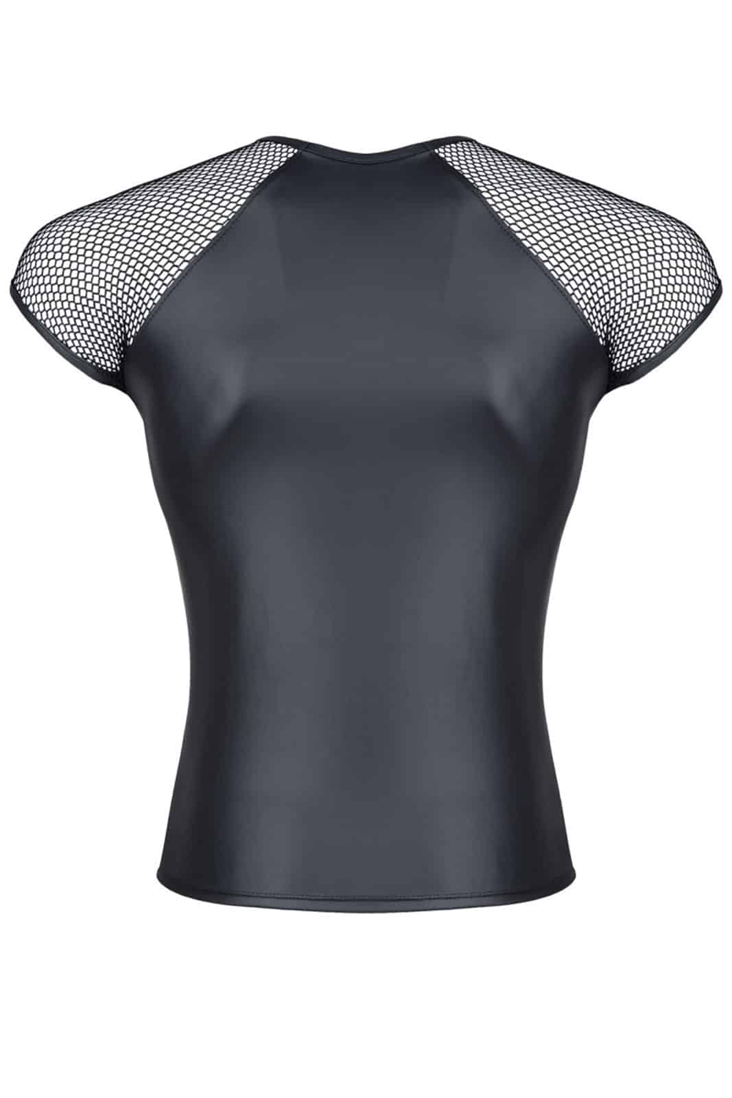 T-shirt made of high quality eco leatherette with sleeves made of elastic mesh fabric. Comfortable to wear and soft to the touch. For durability, the seams are reinforced.