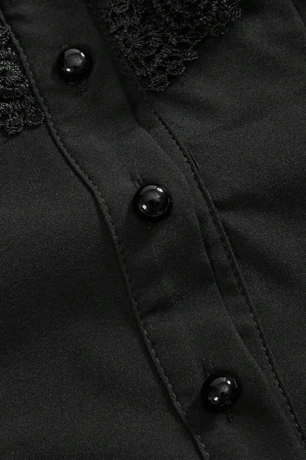 Diese Gothic-inspirierte Bluse kombiniert romantische Details mit einem Hauch Retro-Charme. Der hübsche Rüschenkragen mit zartem Volant verleiht dem Design eine verspielte Eleganz. Die durchgehende Knopfleiste vorn unterstreicht den klassischen Look und macht das Stück vielseitig kombinierbar – ob als stilvoller Solist oder als raffinierter Layer unter einem Kleid oder Top. Die ärmellose Form sorgt für Leichtigkeit, ohne auf Ausdruck zu verzichten. Perfekt für alle, die feminine Raffinesse mit dunkler Ästhetik verbinden möchten.