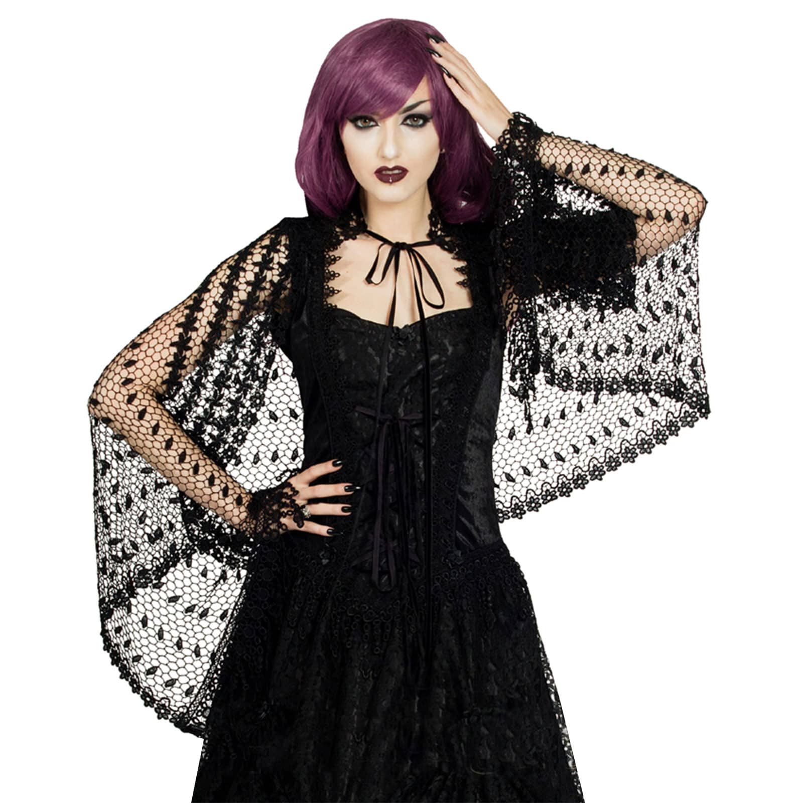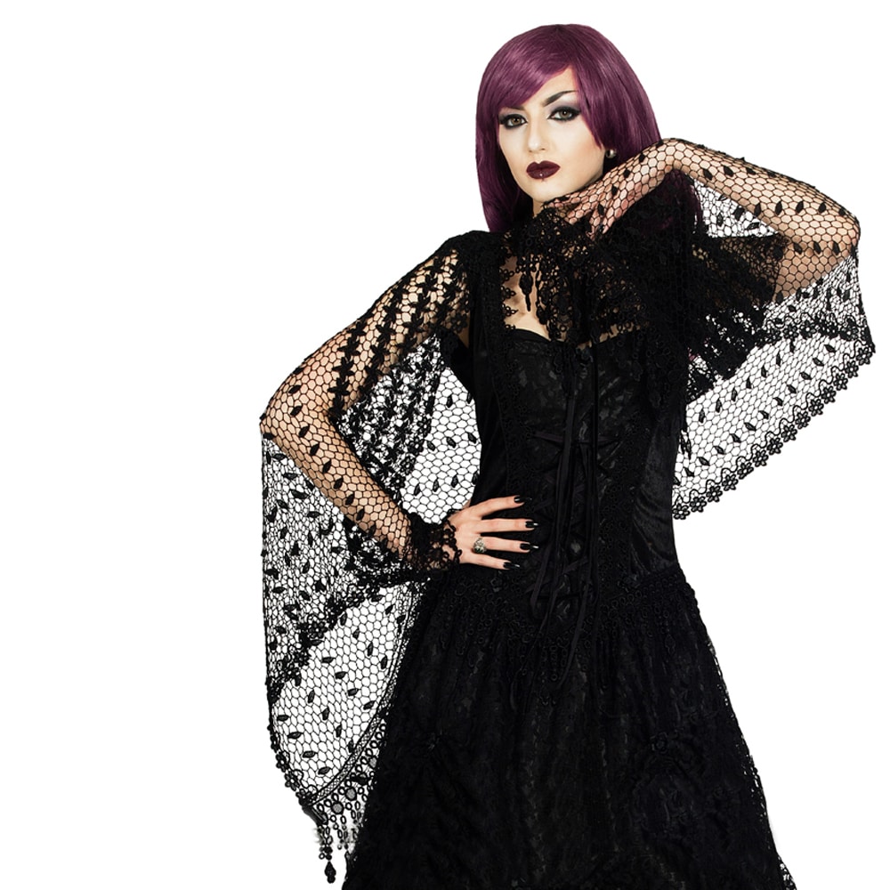 Luftig-leichter Netzschal, verziert mit wunderschöner, breiter Spitzenborte. Mit schmalen Samtändern zum Fixieren.