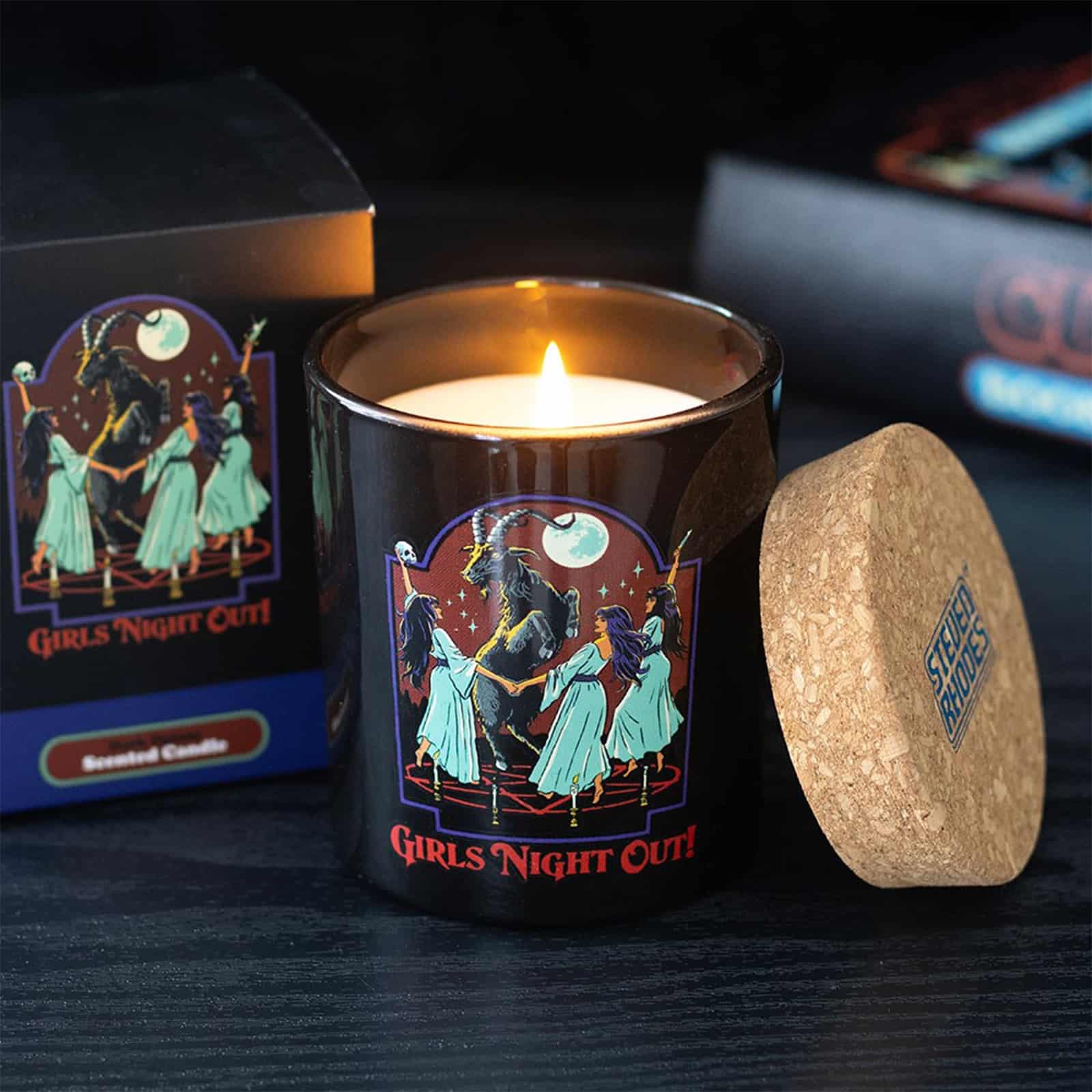 Diese stimmungsvolle Duftkerze bringt augenzwinkernden Okkult-Charme und retro-inspirierte Illustration perfekt zusammen. Das provokante „Girls Night Out!“-Motiv mit Ziegenbock, Pentagramm und nächtlicher Ritualszene macht sie zu einem echten Hingucker – ideal für alle, die dunklen Humor, Mystik und außergewöhnliches Design lieben.