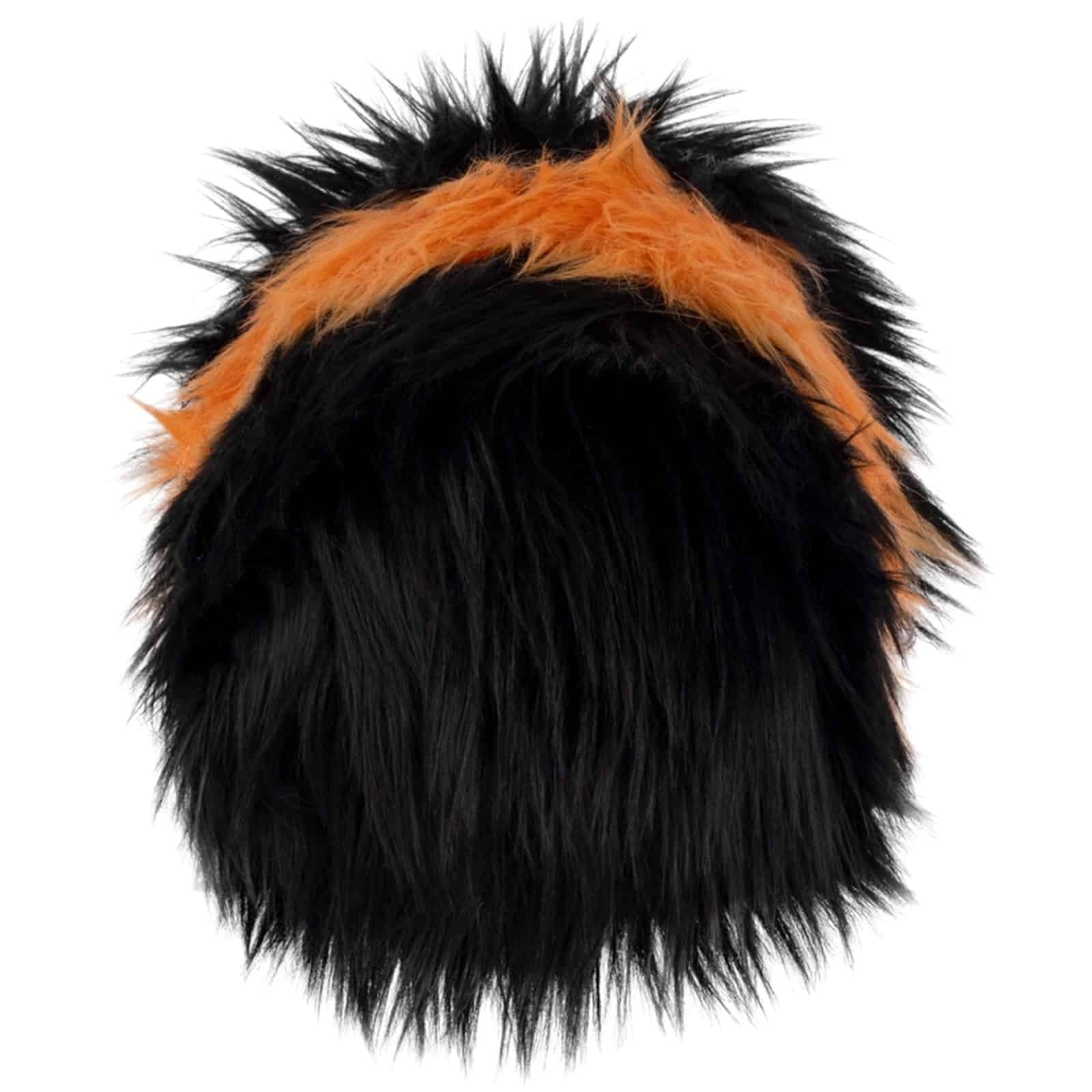Wuschelig weicher Plüschkörper mit schwarzem und orangefarbenem Verlauf