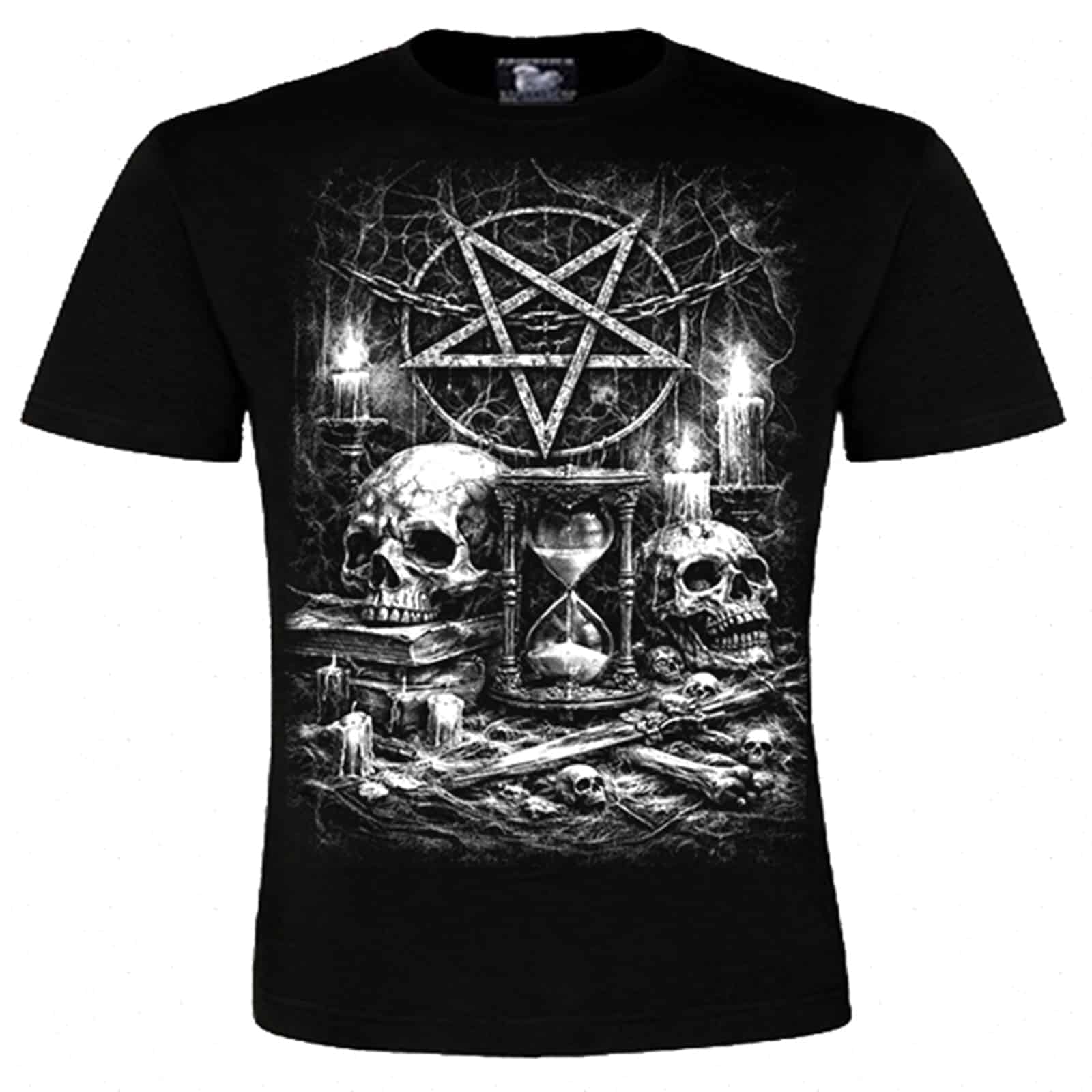 Dieses schwarze T-Shirt vereint düstere Symbolik mit klassischem Tragekomfort. Gefertigt aus reiner Baumwolle bietet es ein angenehmes Hautgefühl und eignet sich perfekt für Alltag, Szene-Outfits oder Konzerte.