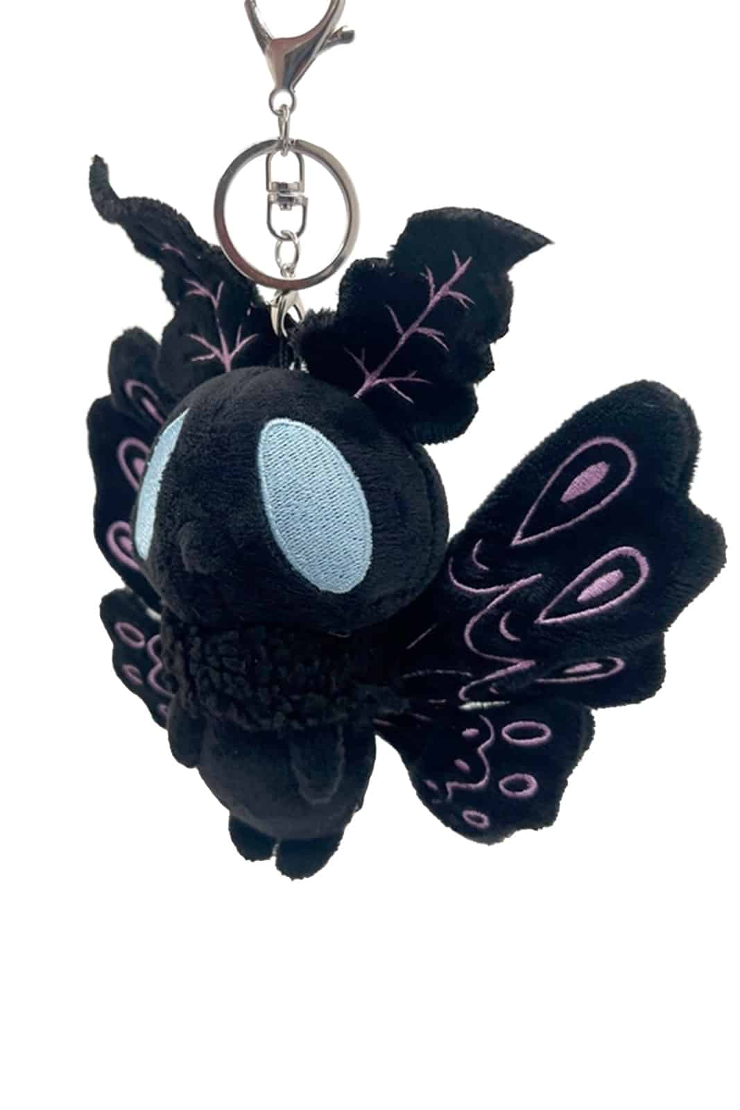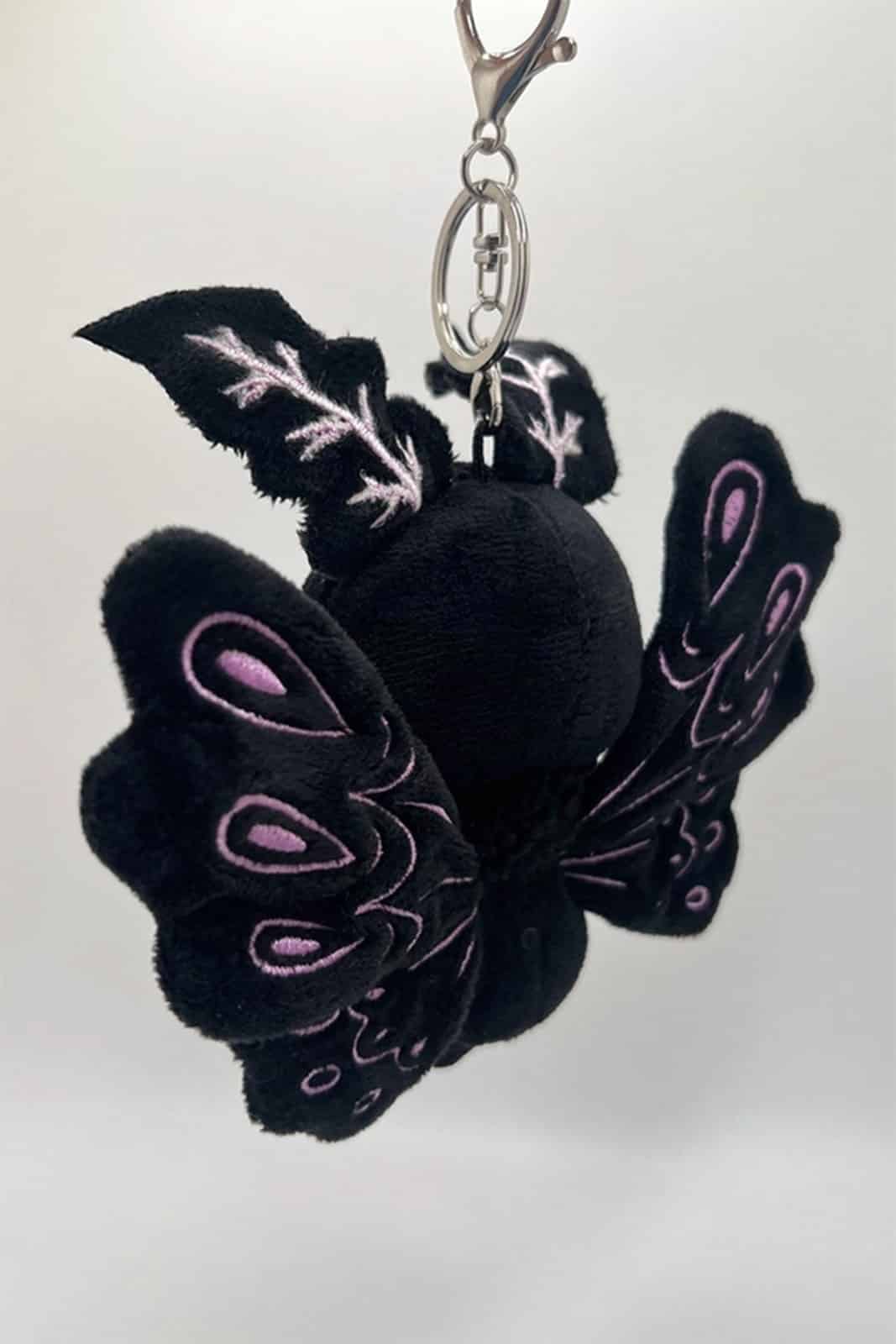 Ein magischer Motten-Anhänger mit geheimnisvoller Ausstrahlung. Das flauschige schwarze Plüschfell, die beweglichen bestickten Flügel und die sanften Details machen diesen Anhänger zu einem besonderen Begleiter für Taschen oder Schlüssel.