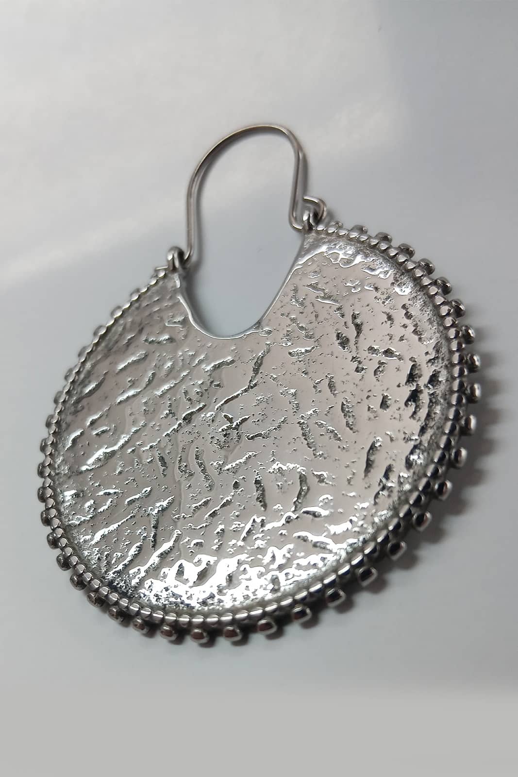 Ein Hauch von Mondenergie in klarer Form. Die „Lunar Echo Hammered Hoops“ vereinen organische Strukturen mit minimalistischer Eleganz. Die gehämmerte Oberfläche bricht das Licht auf einzigartige Weise und verleiht jedem Look eine geheimnisvolle Tiefe – ob in Gold, Silber oder Schwarz.