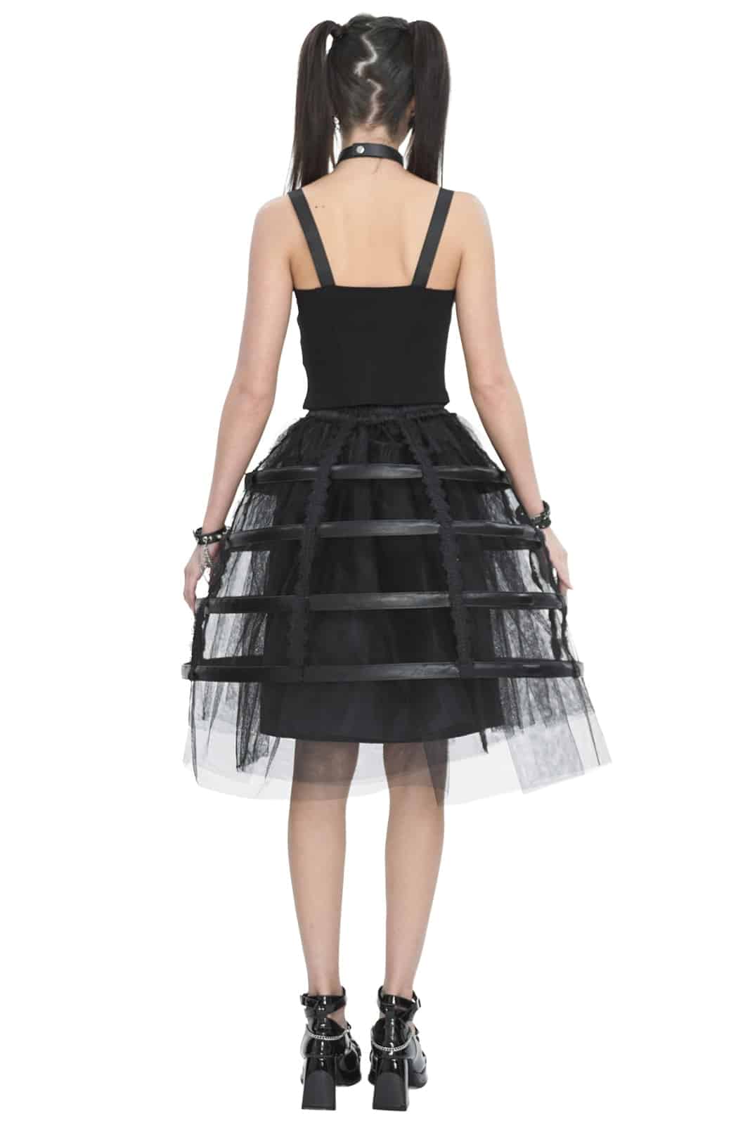Die Gothic Marquess Crinoline Skirt ist ein eindrucksvolles Statement-Piece, das die Romantik viktorianischer Mode mit moderner Gothic-Ästhetik verbindet. Das Design besteht aus zwei Teilen und bietet so vielseitige Styling-Möglichkeiten: ein weicher Tüllrock im Tutustil sorgt für Volumen und eine verspielte Silhouette, während die darüberliegende Crinoline-Konstruktion aus Kunstleder dem Look Struktur und Dramatik verleiht. Verziert mit dekorativen Nieten und Spitzenbesätzen entsteht ein faszinierendes Zusammenspiel aus Härte und Eleganz. Der Rock endet knieumspielend und ist dank des elastischen Bundes angenehm zu tragen und flexibel in der Passform. Ob als alleinstehender Rock getragen oder als Unterrock für festliche Kleider – dieses Modell verleiht jedem Outfit eine majestätische Wirkung. Ideal für Festivals, Cosplay, alternative Hochzeiten oder besondere Anlässe, bei denen ein opulenter Auftritt gewünscht ist. Gefertigt aus einem Mix von Polyester, Spandex und Kunstleder ist er nicht nur optisch ein Highlight, sondern auch stabil und langlebig. Inspiriert von der historischen Krinoline des 19. Jahrhunderts bringt dieser Rock klassische Modegeschichte in die Gegenwart und macht ihn zu einem unverzichtbaren Teil jeder romantisch-gotischen Garderobe.