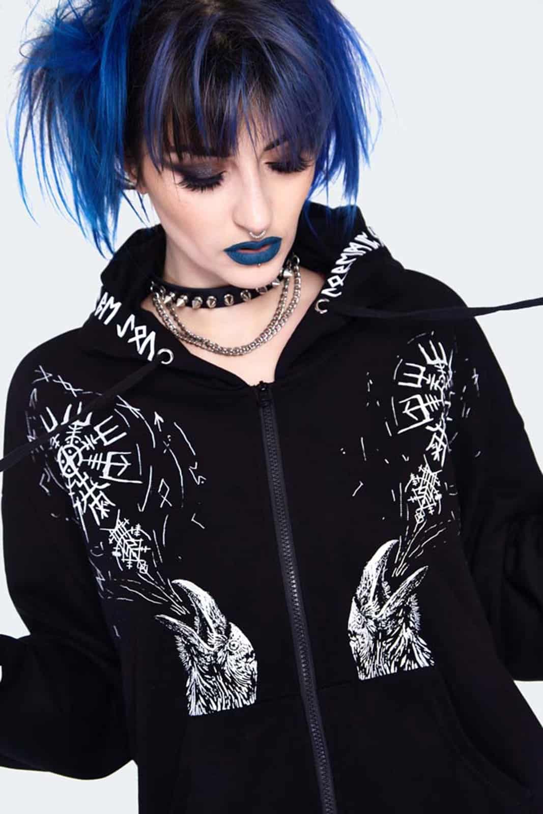 Höre den Ruf der Raben in den Ruinen – die Symbole dieses Hoodies. Mit dem einzigartigen Print auf der Vorderseite und der Kapuze sowie dem super lässigen Schnitt ist dieser Hoodie ein absolutes Must-have.