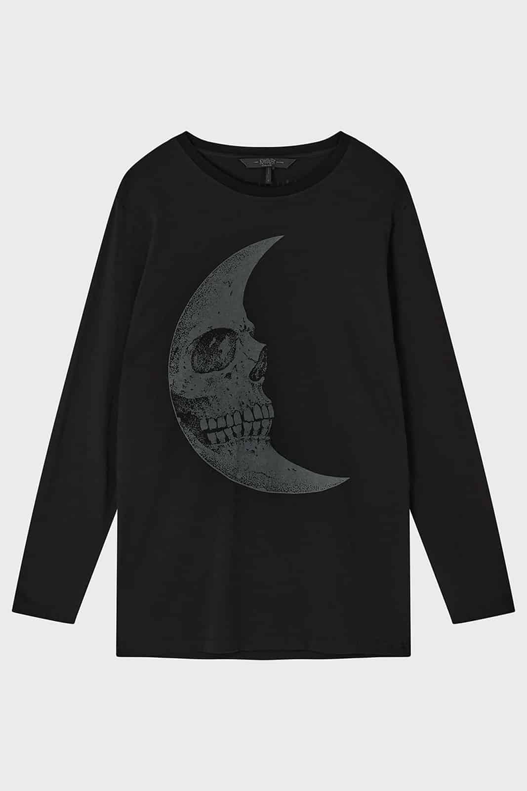 Classic cut gothic long-sleeved shirt with a round neckline and large moon graphic on the front. Made from pure, high-quality cotton.