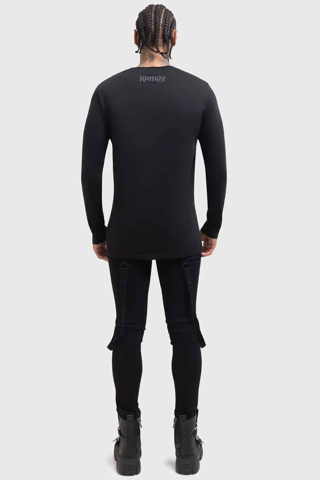 Klassisch geschnittenes Gothic Langarmshirt mit Rundhalsausschnitt und großer Mondgrafik auf der Vorderseite. Gefertigt aus reiner, hochwertiger Baumwolle.