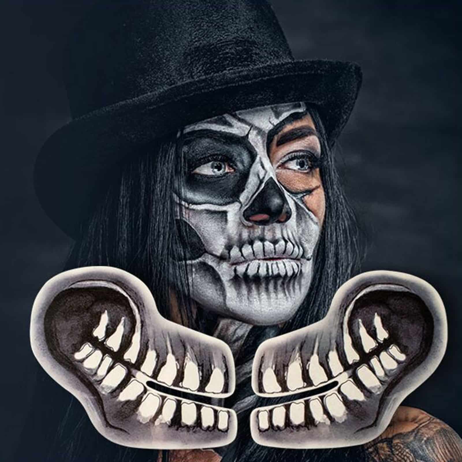 Keine großen Schmink-Skills? Kein Problem! Den Tattoo Skull super einfach aufkleben und das Totenkopf Make Up ist fertig!