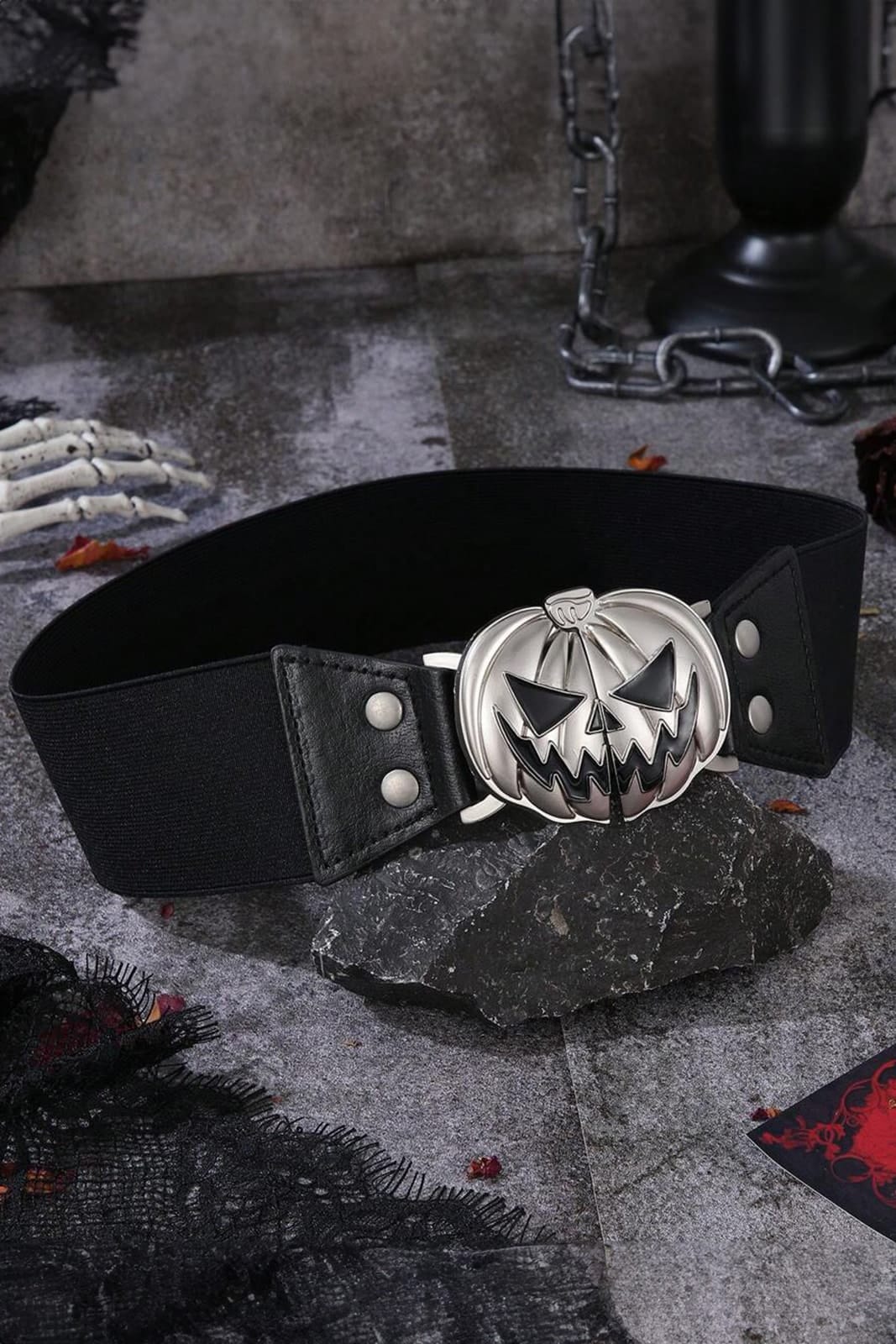 Hoch elastischer Gürtel mit Frontschnalle in Form eines Kürbiskopfes.