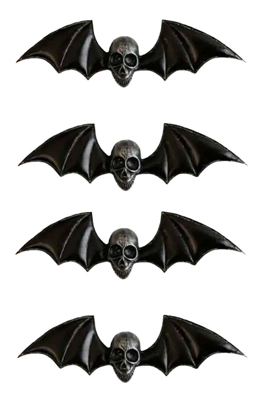 Schwarze Haarspange in Form einer Fledermaus mit großem Totenschädel in der Mitte.
