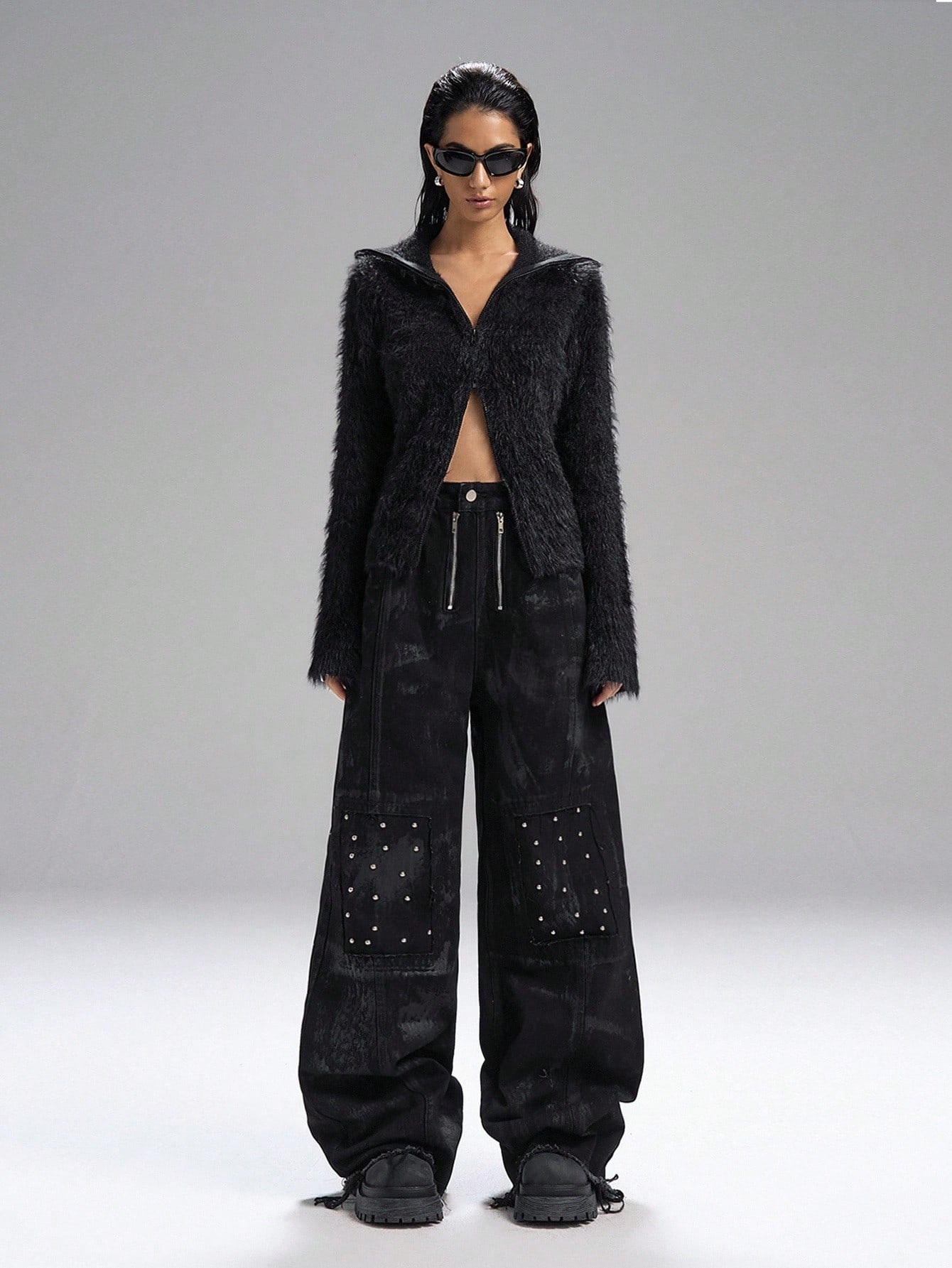 Die Raven Velvet Jacke vereint herbstliche Wärme mit einem Hauch dunkler Eleganz. Ihr weiches, flauschiges Fell-Material sorgt für angenehmen Tragekomfort, während der doppelte Reißverschluss sich flexibel von oben oder unten öffnen lässt. Der markante Stehkragen und die leicht taillierte Passform betonen die Silhouette und verleihen der Jacke einen modernen Gothic-Touch. Perfekt für kühle Tage, an denen Stil und Gemütlichkeit eins werden.