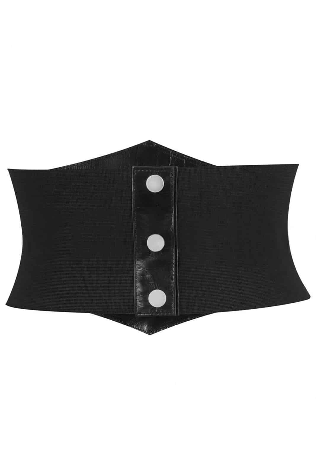 Miedergürtel aus Kunstleder mit elastischem Rückenband und drei Druckknöpfen.