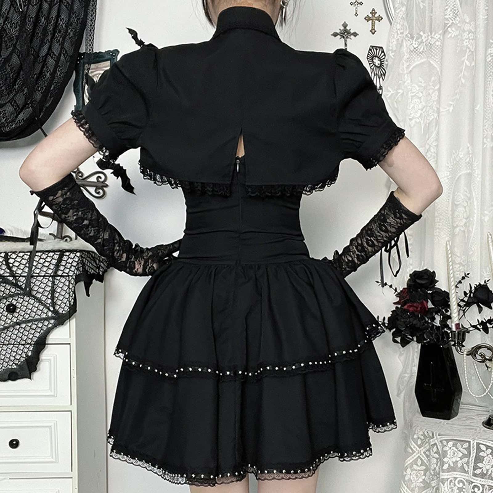 Der Bolero Shy Girl verleiht jedem Outfit eine geheimnisvolle und elegante Note. Mit seiner femininen Kurzform, der zarten Spitzenverzierung und den silberfarbenen Ketten-Details betont er charmant das Dekollete und sorgt für einen raffinierten Blickfang. Der hochgeschlossene Kragen mit feiner Stickkante und die gepufften Ärmel erinnern an viktorianische Modeelemente, die modern interpretiert wurden. Ob über einem trägerlosen Kleid oder einem Corset-Top – dieser Bolero aus leichtem Polyesterstoff ergänzt jedes Gothic-, Lolita- oder Dark-Aesthetic-Outfit mit stilvoller Dramatik. Ideal für besondere Anlässe oder als Statement Piece im Alltag.