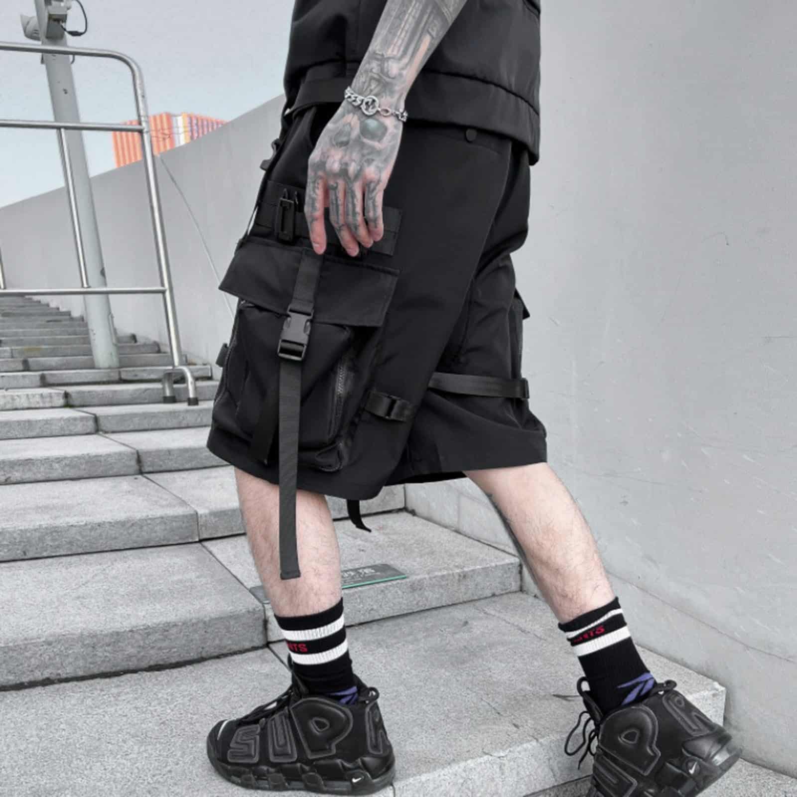 Leichte, lässige Herrenshorts mit zwei seitlichen Einschubtaschen. Die Gesäßtaschen sind mit praktischen Durckknöpfen versehen. Auf den Beinen sind Taschen mit Reißverschluß aufgesetzt. Zusätzlich sind zwei kleine Taschen verarbeitet. Die Hose wird mit einem Reißverschluß und Druckknopf verschlossen. Der Bund ist mit einem Gummizug ausgestattet. Zusätzlich ist ein verstellbarer Gürtel eingearbeitet.