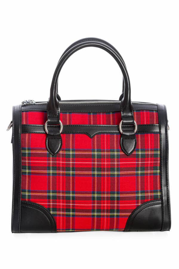 Spacious bowling bag with handles and removable shoulder strap. Shapely faux leather applications decorate the attachment of the handles and the bottom corners. Can be opened and closed with a zipper.