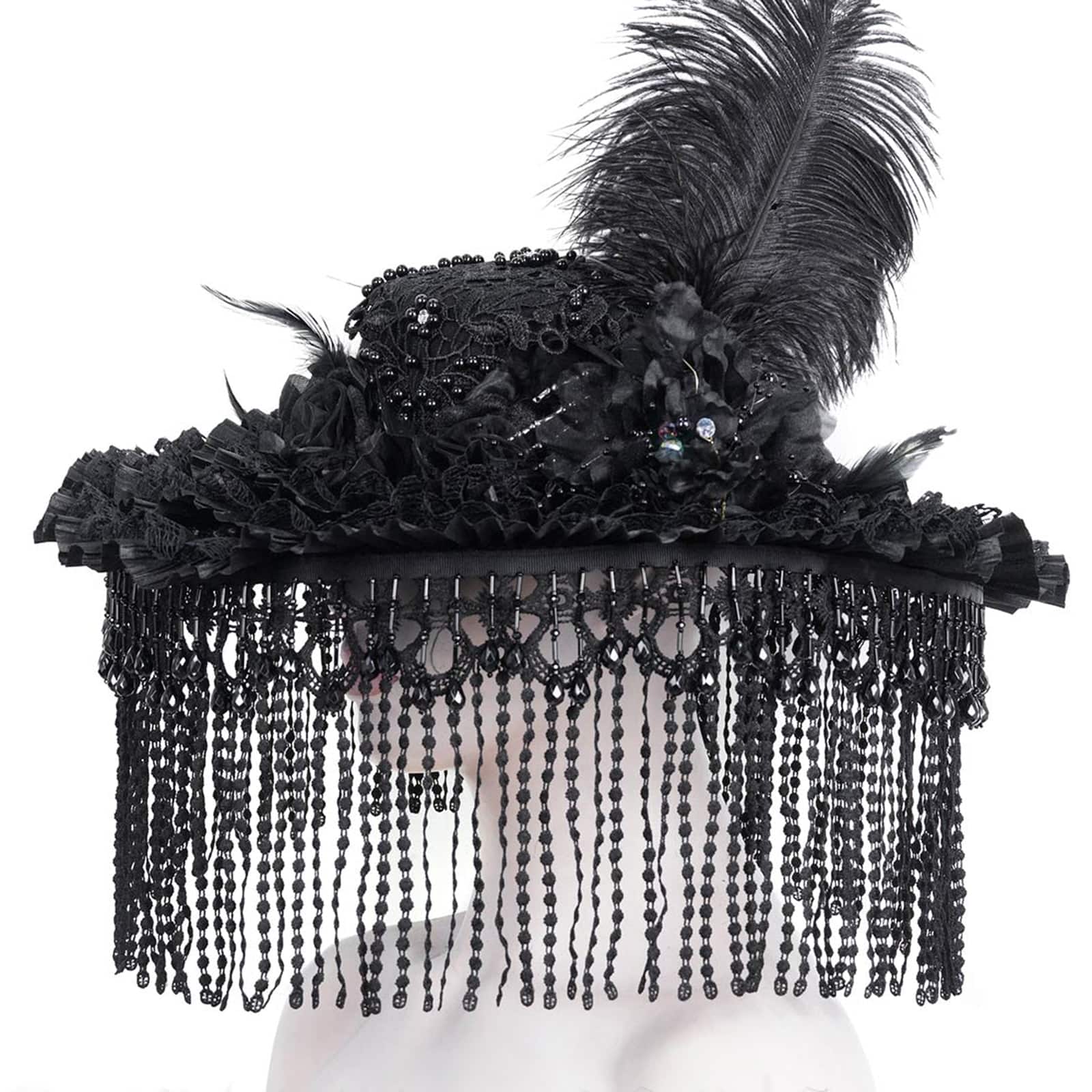 Romantischer Gothic-Hut für Damen mit Rüschen und breiter Krempe und Fransenbesatz