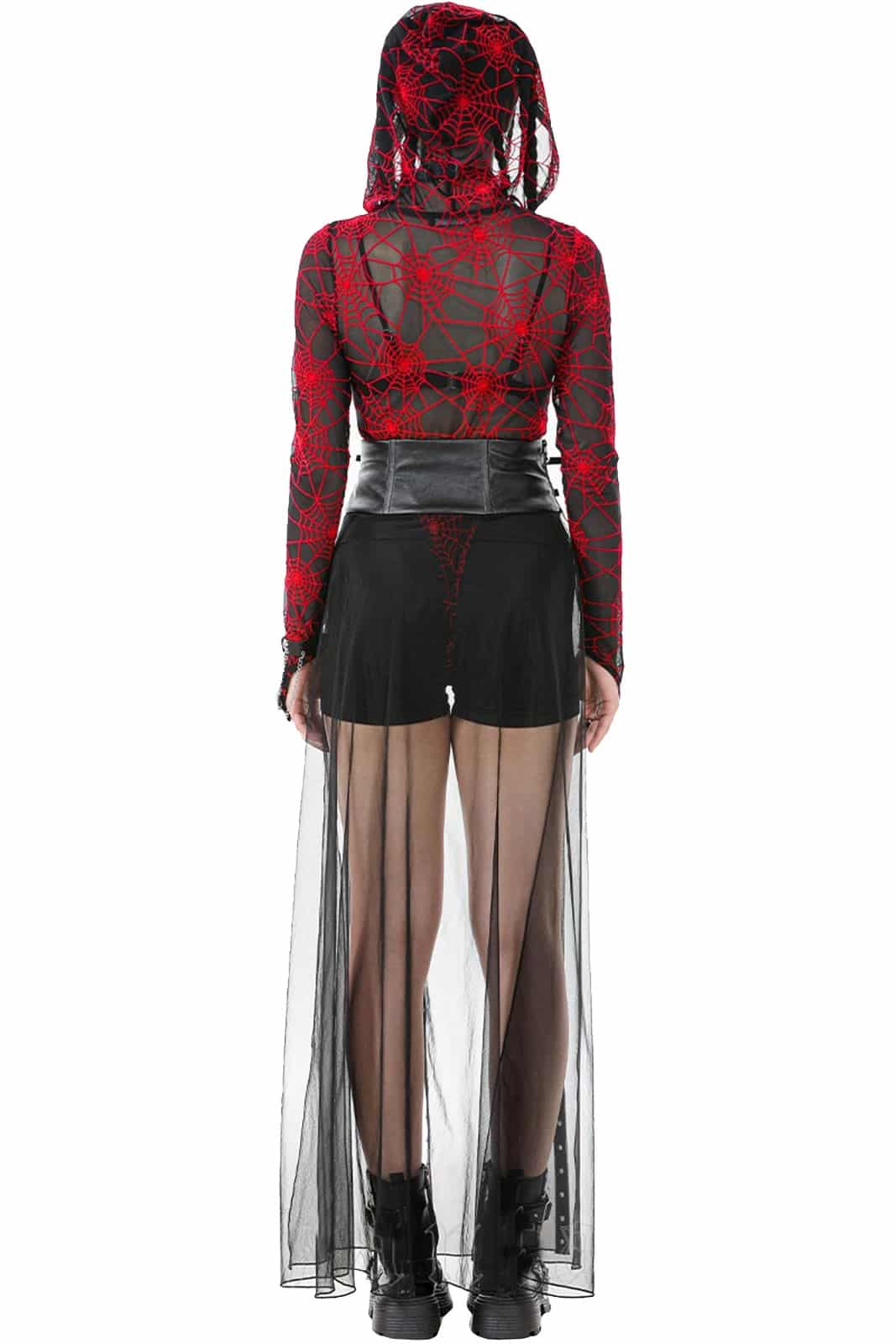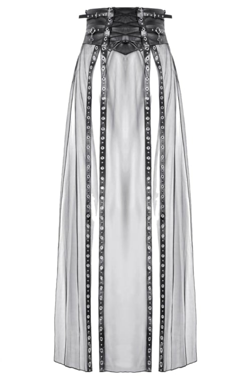 Der Dark Sigil Overskirt vereint verführerische Transparenz mit düsterem Industrial-Charme. Das lange, fließende Design aus feinem Mesh-Tüll legt sich leicht über Shorts, Röcke oder Bodys und verwandelt jedes Outfit in ein kraftvolles Statement. Die hohe Kunstleder-Taille betont die Figur und wird durch Ösenriemen, Schnürdetails und Metallakzente perfekt in Szene gesetzt. Zwei vordere Schlitze sorgen für Bewegungsfreiheit und verleihen dem Look eine provokante, aber elegante Note. Ob auf der Bühne, beim Festival oder als Layering-Piece im Alltag – dieser Rock ist pure Dark-Glam-Energie.